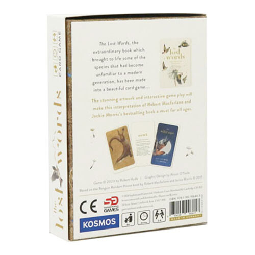 The Lost Words — карточная игра, основанная на потрясающей книге автора бестселлеров Роберта Макфарлейна и иллюстратора более 40 любимых классических произведений Джеки Морриса. Книга «Потерянные слова» является неотъемлемой частью журнальных столиков по всему миру и является обладателем престижной медали CILIP Кейт Гринуэй. В игре можно выиграть, поместив свои карты Заклинаний поверх красиво иллюстрированных карт Природы перед противником. Ваш квест будет заблокирован картами особых действий, которые оторвут от вас завершенные наборы и позволят вам украсть карты из руки противника! The Lost Words достаточно проста, чтобы в нее можно было играть детям от 8 лет, но достаточно стратегична, чтобы заинтересовать взрослых. Она станет прекрасным дополнением к любой коллекции игр или журнальному столику.