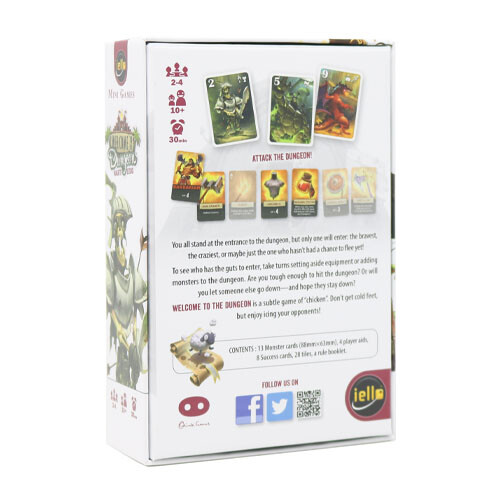 • В этом подземелье водятся монстры, и кто-то должен войти и разобраться с ними всеми. Добро пожаловать в подземелье, игроки выберут героя с набором снаряжения, который отправится в подземелье, чтобы сразиться со всеми содержащимися в нем монстрами. Добро пожаловать в подземелье, где вам предстоит блефовать и испытать удачу в быстрой карточной игре. В коробке 4 героя, каждый из которых обладает своим уникальным набором снаряжения, что придает некоторую ценность при воспроизведении. В свой ход каждый игрок вытягивает монстра из колоды и затем может либо поместить этого монстра в колоду, либо оставить его себе и снять с героя предмет снаряжения. Но будьте осторожны, если убрать слишком много снаряжения, герой может не пройти подземелье живым. Если вы не думаете, что герой сможет пройти через подземелье с оставшимся у него снаряжением, вы можете пройти, и последний оставшийся игрок должен провести героя через подземелье. При проведении героя через подземелье карты переворачиваются лицевой стороной вверх. Если есть часть экипировки, способная справиться с монстром, она побеждена, если нет, монстр наносит урон герою. Если герой теряет всю свою жизнь, игрок терпит неудачу и теряет жизнь. Если они завершат подземелье, игрок побеждает и получает очко. Побеждает тот, кто первым наберет 2 очка! Игроки: 2-4 Возраст: 10+ Время игры: 30 минут