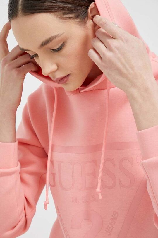 Толстовка Guess с капюшоном из трикотажа с принтом. Модель выполнена из приятной на ощупь ткани.