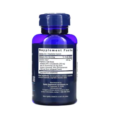 Запатентованная смесь CGM Curcumin Elite, содержащая 40 % куркуминоидов (200 мг) и 3 % турмеронов (15 мг) [из куркумы (корневища)], 30 % галактоманнанов (150 мг) [из пажитника (семена)] 500 мг