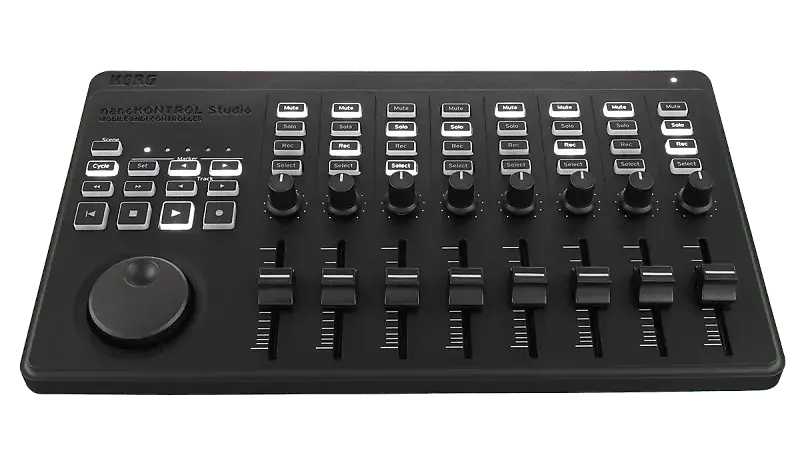 nanoKONTROL Studio — полный набор из 8 длинноходных фейдеров, 8 энкодеров, 16 переключателей, полного управления транспортом с jog< колесо /p>
