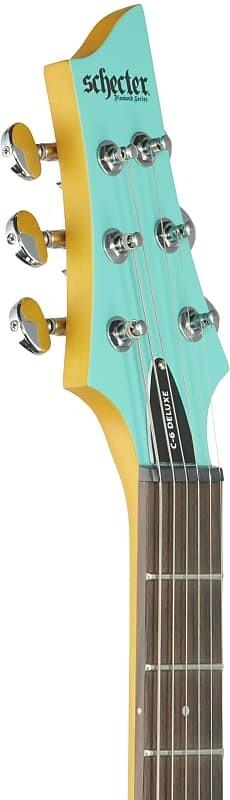 Характеристики: Корпус: липа Гриф: гриф на болтах Лады: 24 узких X-Jumbo Накладка грифа: палисандр Длина мензуры: 25,5 дюйма Радиус накладки грифа: 14 дюймов - Форма грифа: тонкая буква "C" - Графитовый порожек: 42 x 6 мм - Элементы управления: громкость/тембр/3-позиционный переключатель - Анкерный стержень: двойного действия - Колки: Schecter - Электроника: Tune-O-Matic w/ String Thru Бридж в корпусе — Звукосниматели: Schecter Diamond Plus — Вставки в виде точек: 4 мм
