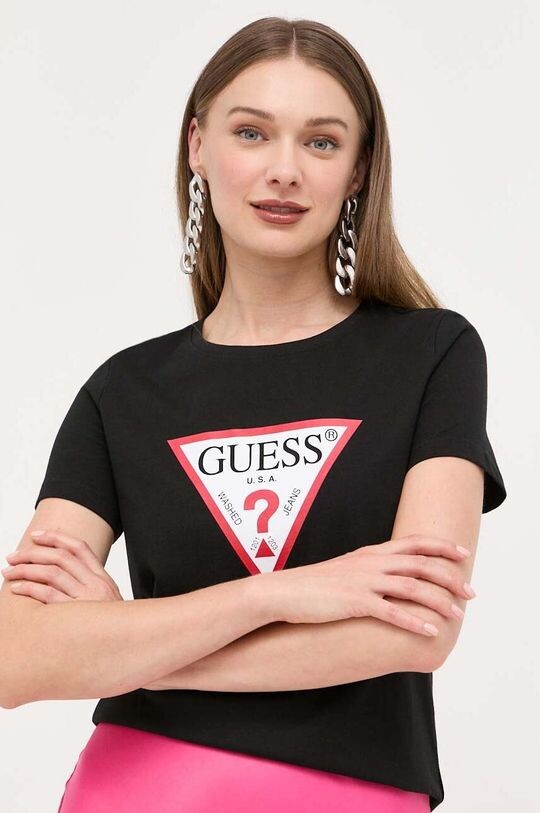 Футболка Guess из трикотажного полотна с принтом. Модель изготовлена ​​из очень комфортной хлопковой ткани.