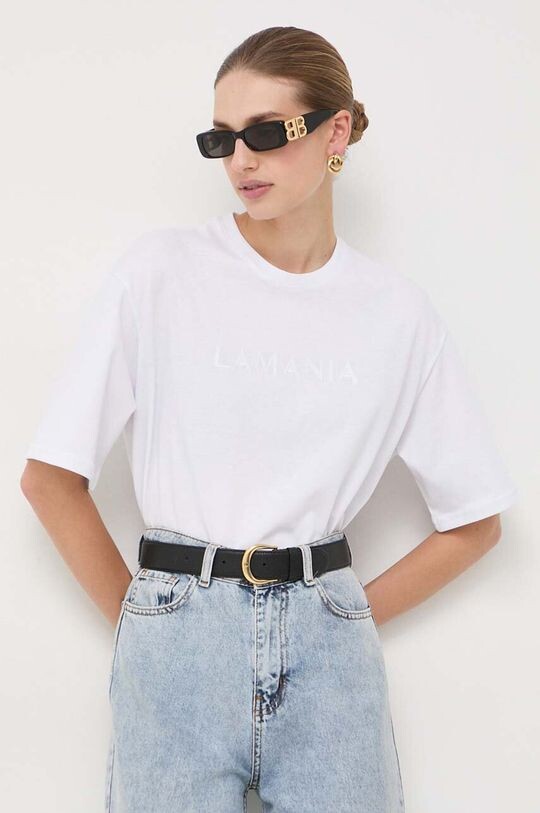 Футболка La Mania изготовлена ​​из тонкого трикотажа стрейч. Модель изготовлена ​​из чрезвычайно комфортной и дышащей хлопковой ткани.