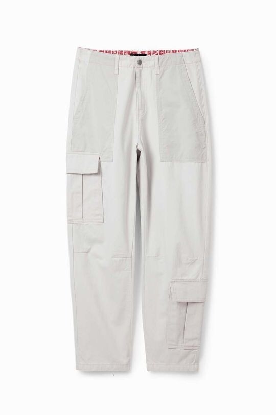 Дезигуальные брюки. Изготовлен из однотонной ткани.