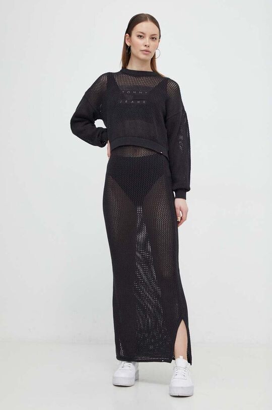 Хлопковая юбка Tommy Jeans, черный