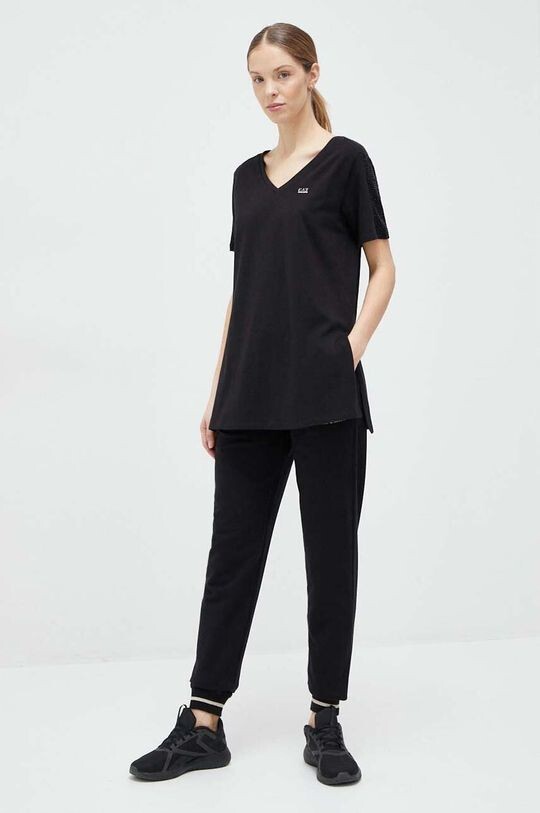 Футболка из коллекции EA7 Emporio Armani. Модель выполнена из эластичного трикотажа. Легкая и удобная модель идеально подходит для повседневного ношения.