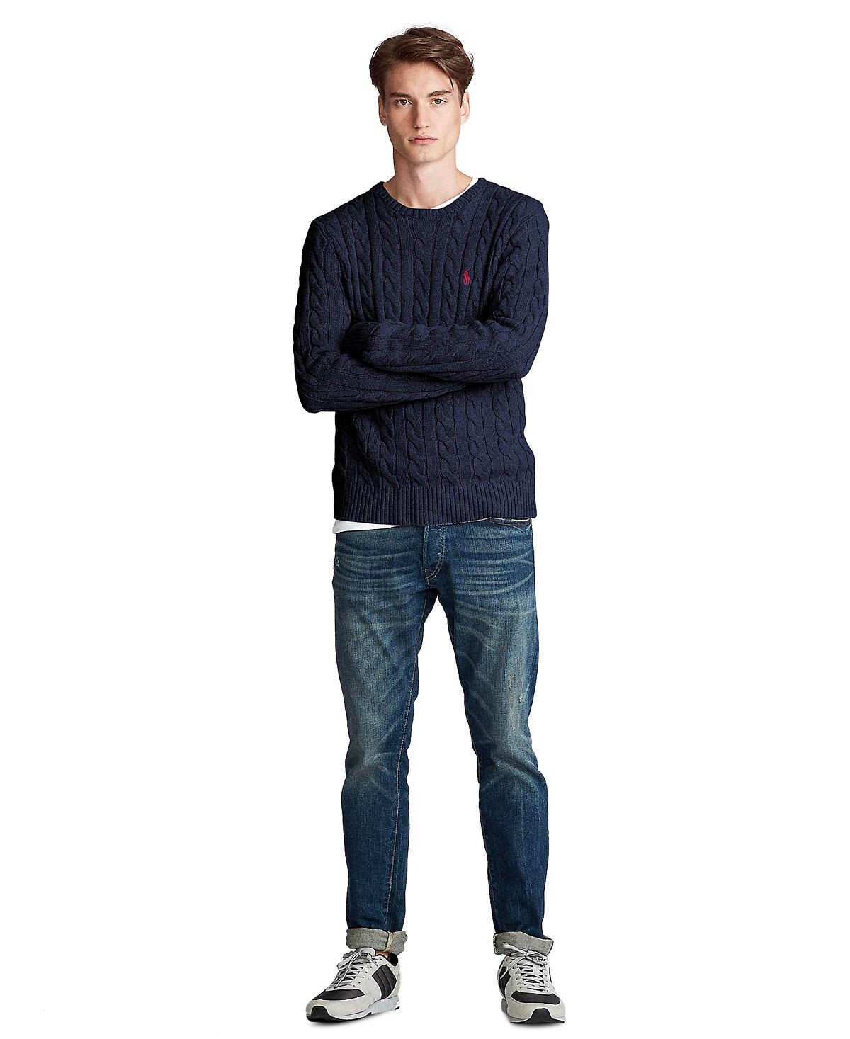 Хлопковый свитер Polo Ralph Lauren сочетает в себе две самые знаковые детали дизайна Polo: текстурный мотив вязания косами и наш фирменный пони.
