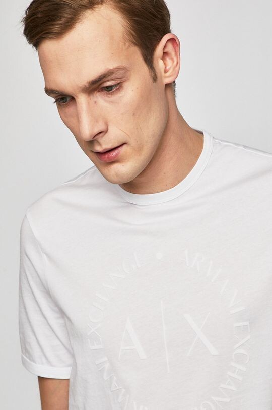 Футболка из коллекции Armani Exchange. Модель из трикотажа с аппликацией.