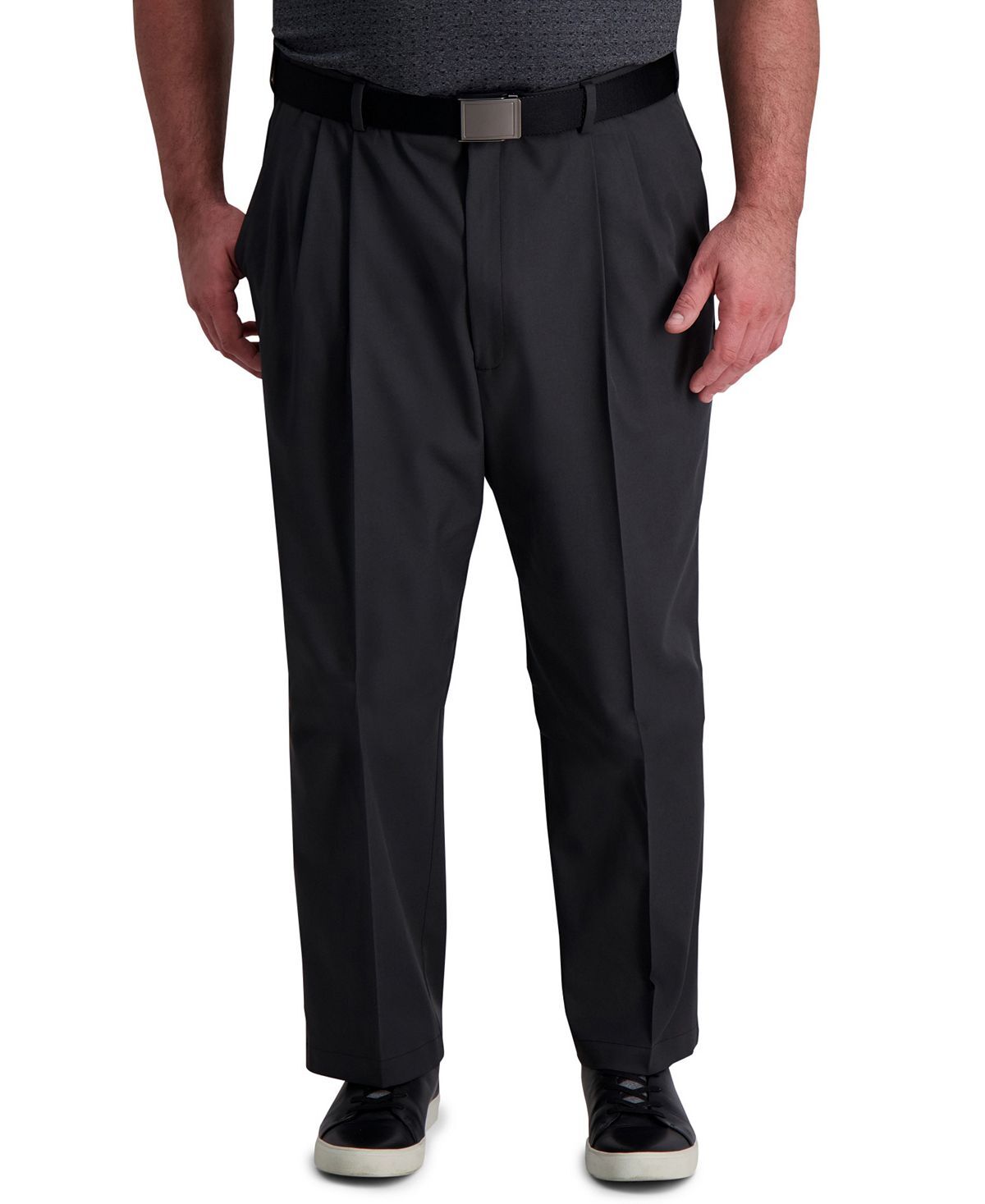 Сохраняйте верность классическому рабочему стилю и комфорту благодаря стандартной посадке и не стесняющей движений эластичной влагоотводящей ткани этих плиссированных, простых в уходе классических брюк от Haggar.