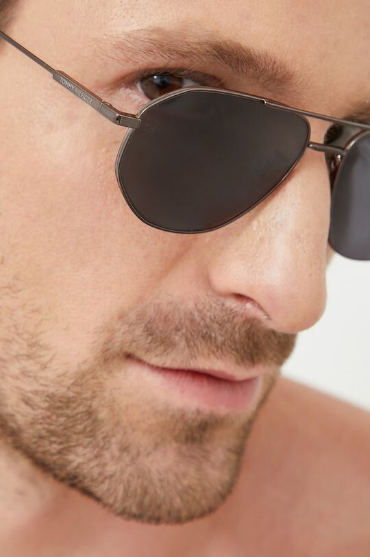 Солнцезащитные очки Томми Хилфигер. Модель с однотонными линзами и пластиковой и металлической оправой. С фильтром UV 400.