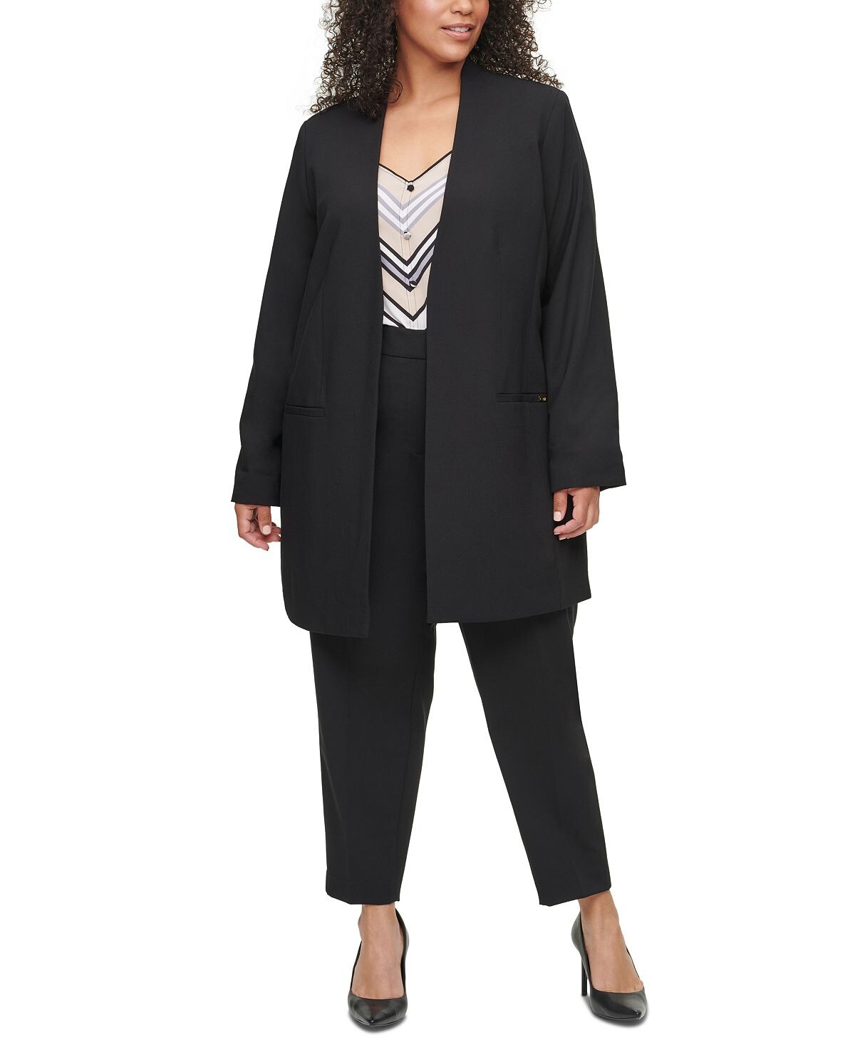 Плюс размер куртка без воротника с открытым передом Calvin Klein, черный