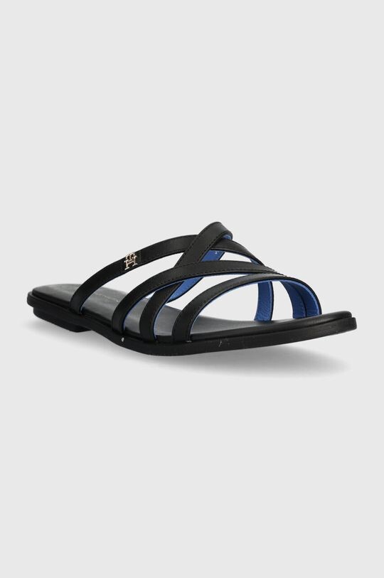 Кожаные шлепанцы TH STRAP FLAT SANDAL Tommy Hilfiger, черный