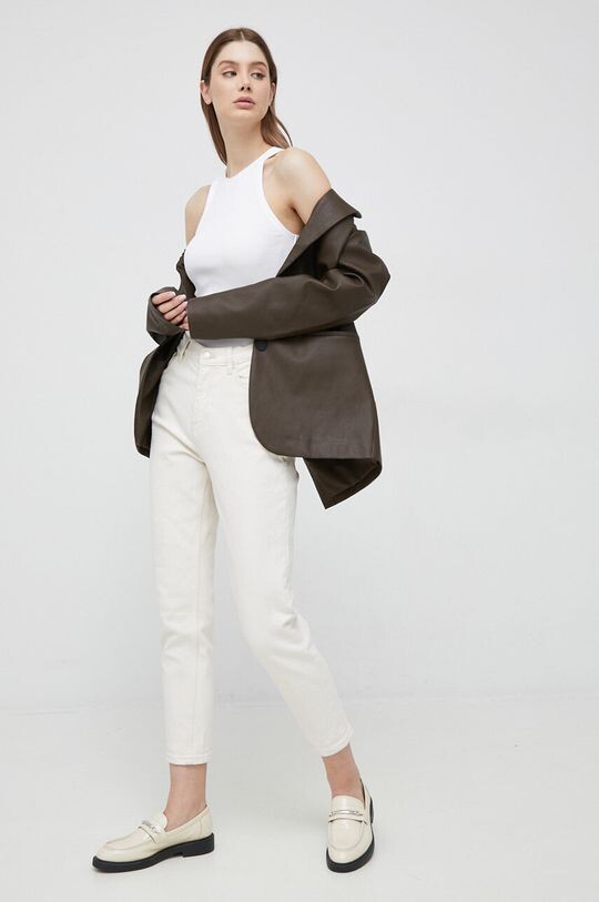 - Модель из трикотажа в рубчик.