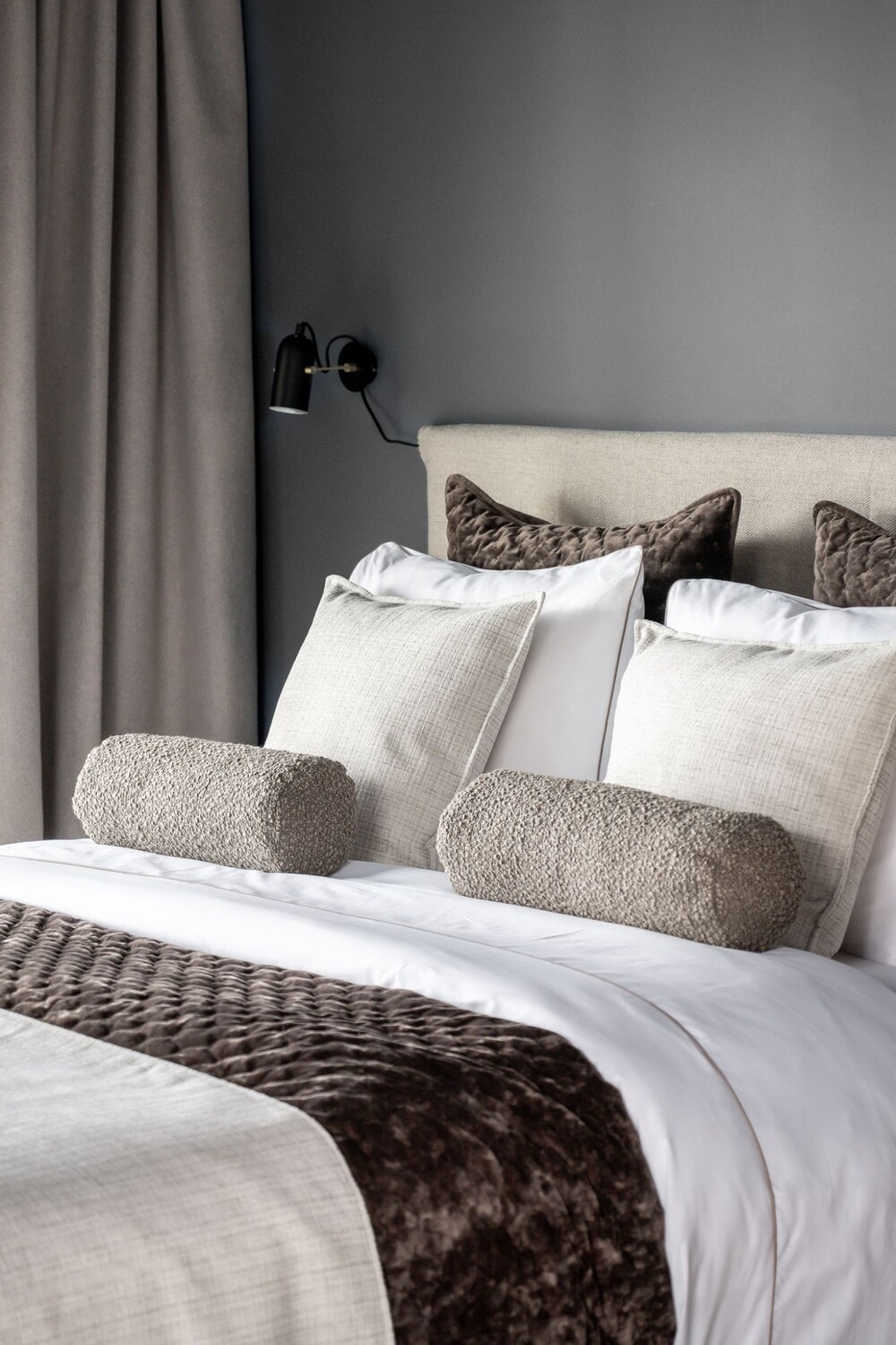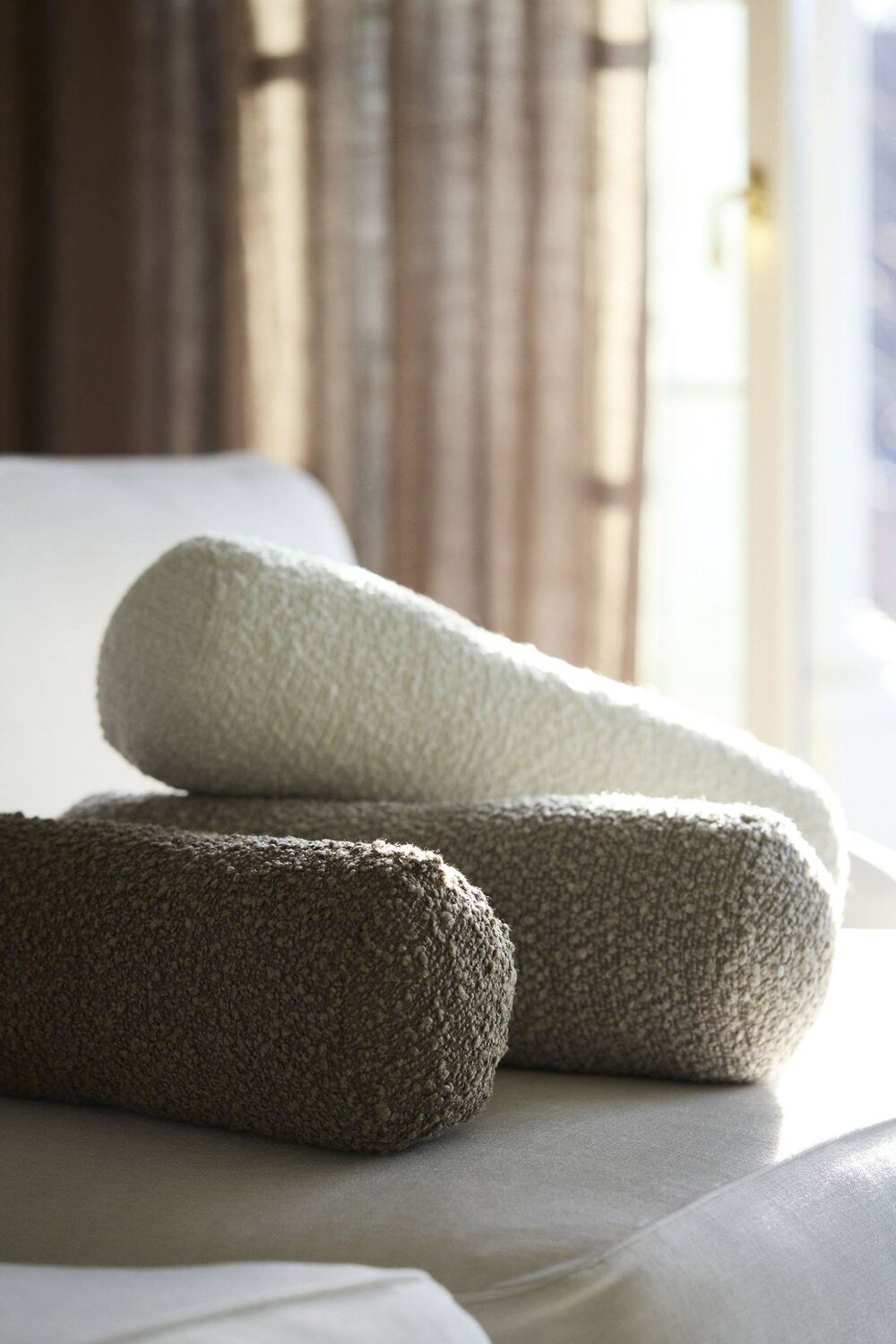 Подушка изготовлена из высококачественной ткани букле. Размеры модели 15 х 15 х 45 см. Размер и форма делают его идеальным украшением кровати или дополнительной опорой на диване.
