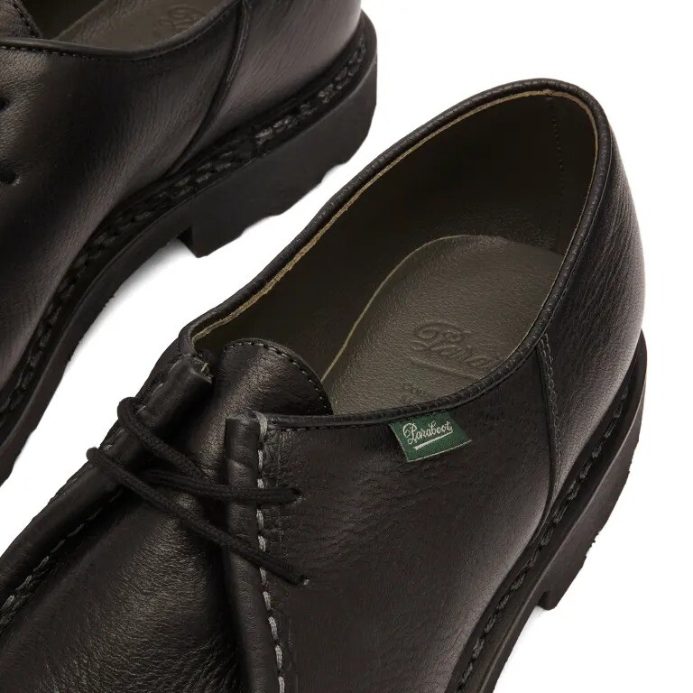 Туфли-дерби Michael от Paraboot в стиле с двумя петельками существуют с 1945 года благодаря второму поколению семьи Ричард-Понверт. Потертая кожа, резиновая подошва, которая выдерживает удары. Кроме того, они изготовлены вручную во Франции с использованием норвежской техники ранта, что делает их прочными, но гибкими.