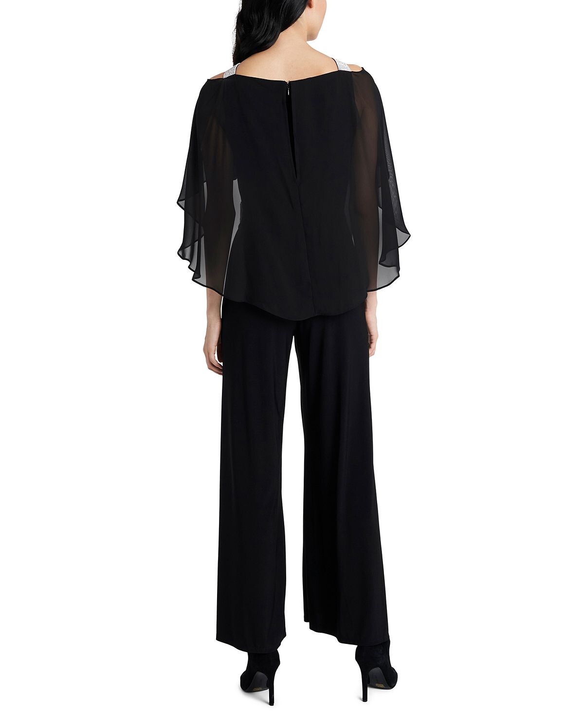 Блестящие бретельки и мягкий воздушный шифон подчеркивают утонченность этого комбинезона с широкими штанинами от MSK.
