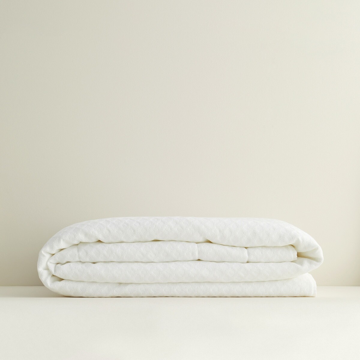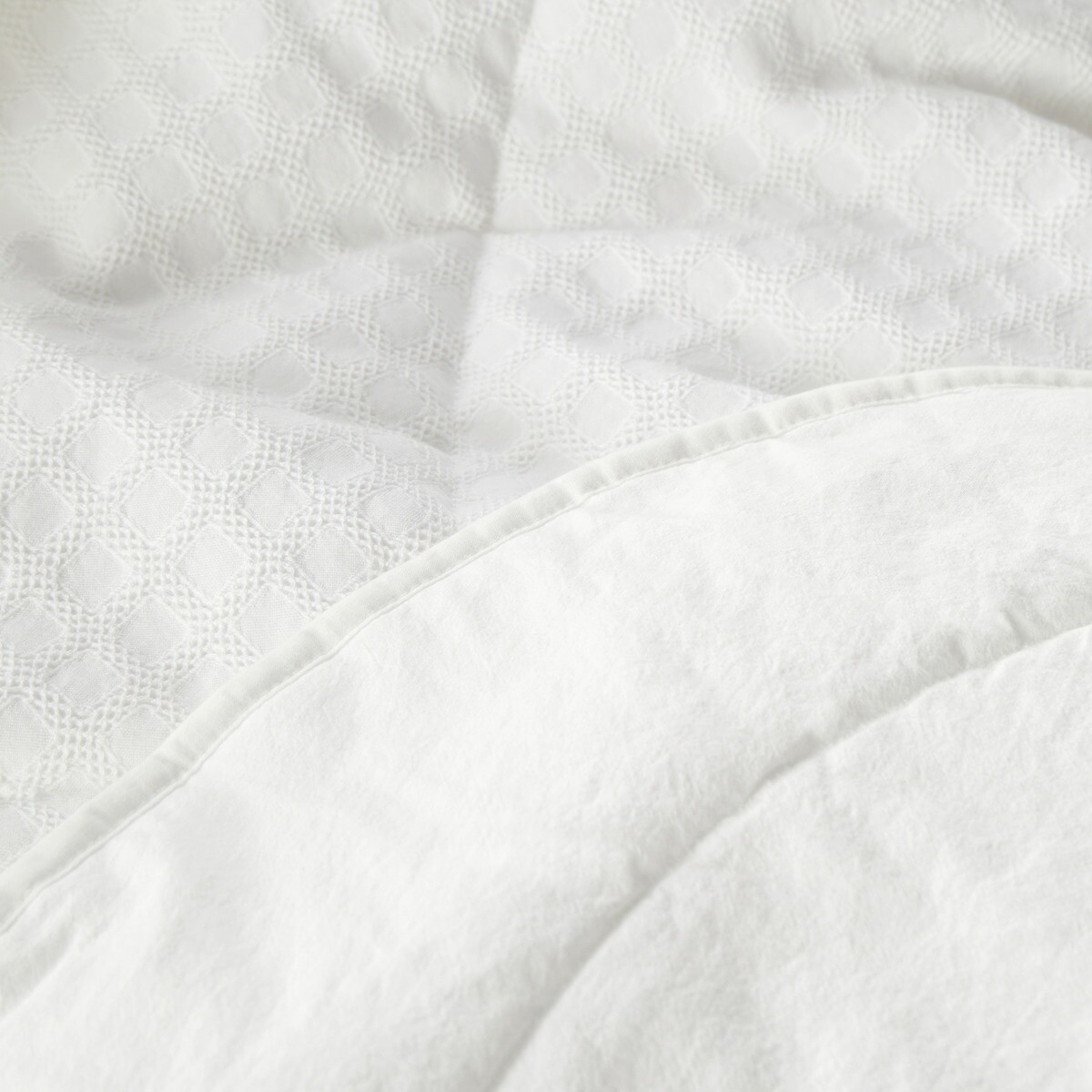 Пуховое одеяло изготовлено в Португалии с геометрическим жаккардовым узором.