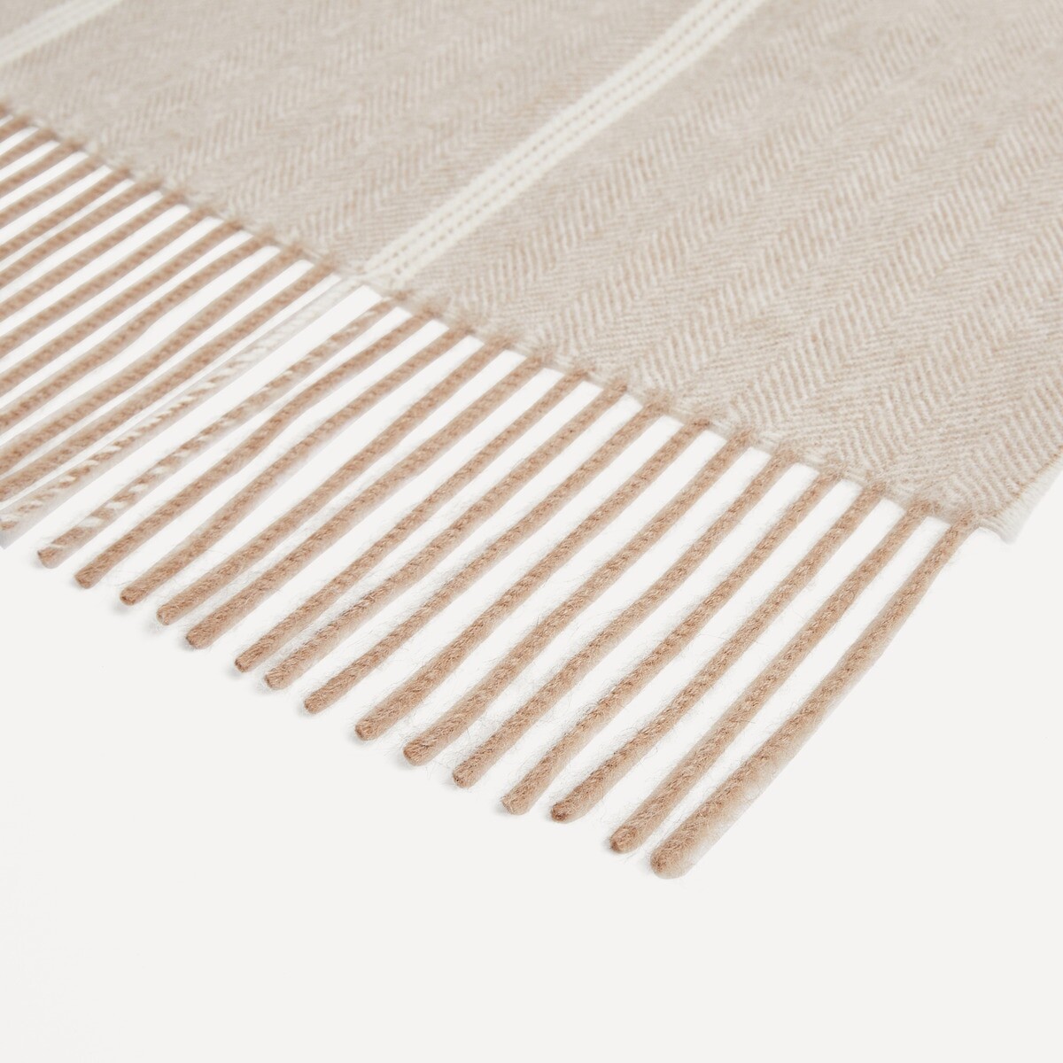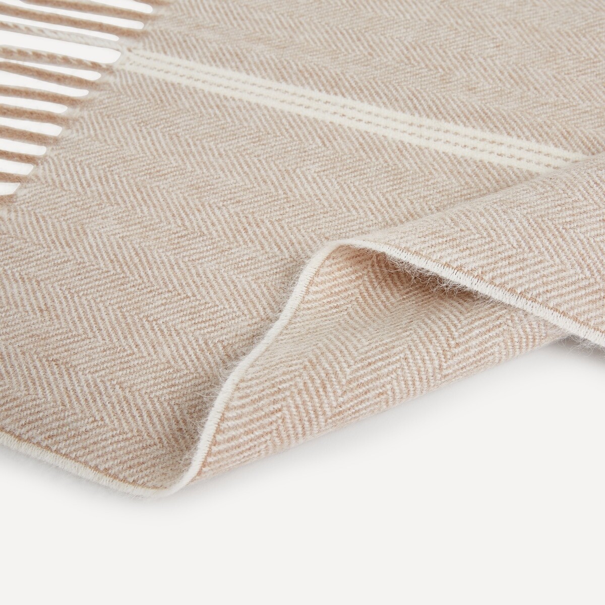 Декоративное одеяло с бахромой и контрастным полосатым рисунком.