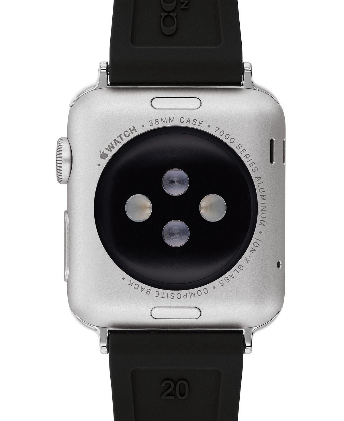 Черный каучуковый ремешок от COACH с тисненым логотипом и фурнитурой из нержавеющей стали станет вашим Apple Watch® стильным компаньоном.