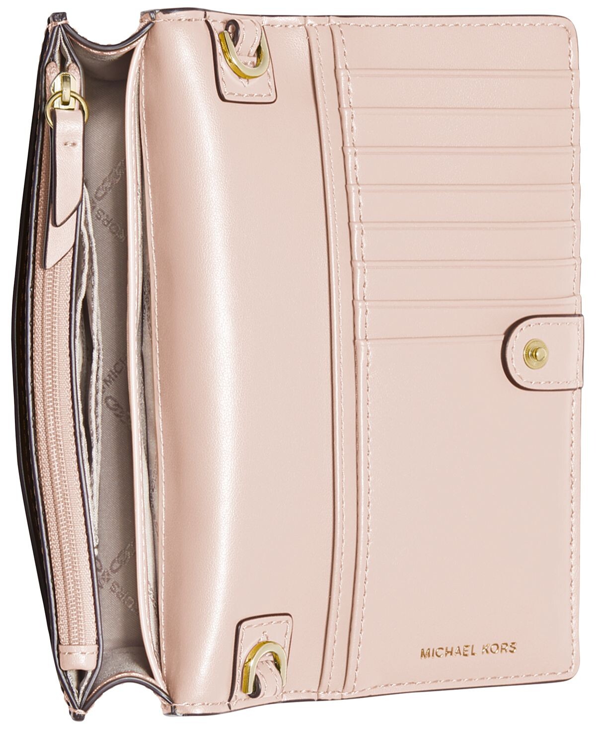 По-настоящему шикарная сумка через плечо из роскошной эластичной кожи с золотистой фурнитурой из коллекции Jet Set Charm от Michael Michael Kors.