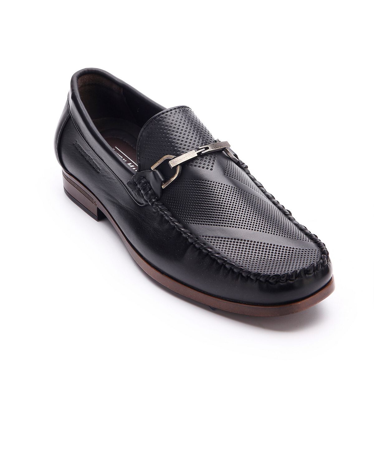 Освежите свой повседневный и повседневный стиль с помощью современной перфорированной союзки и металлических пряжек этих удобных лоферов от Aston Marc.
