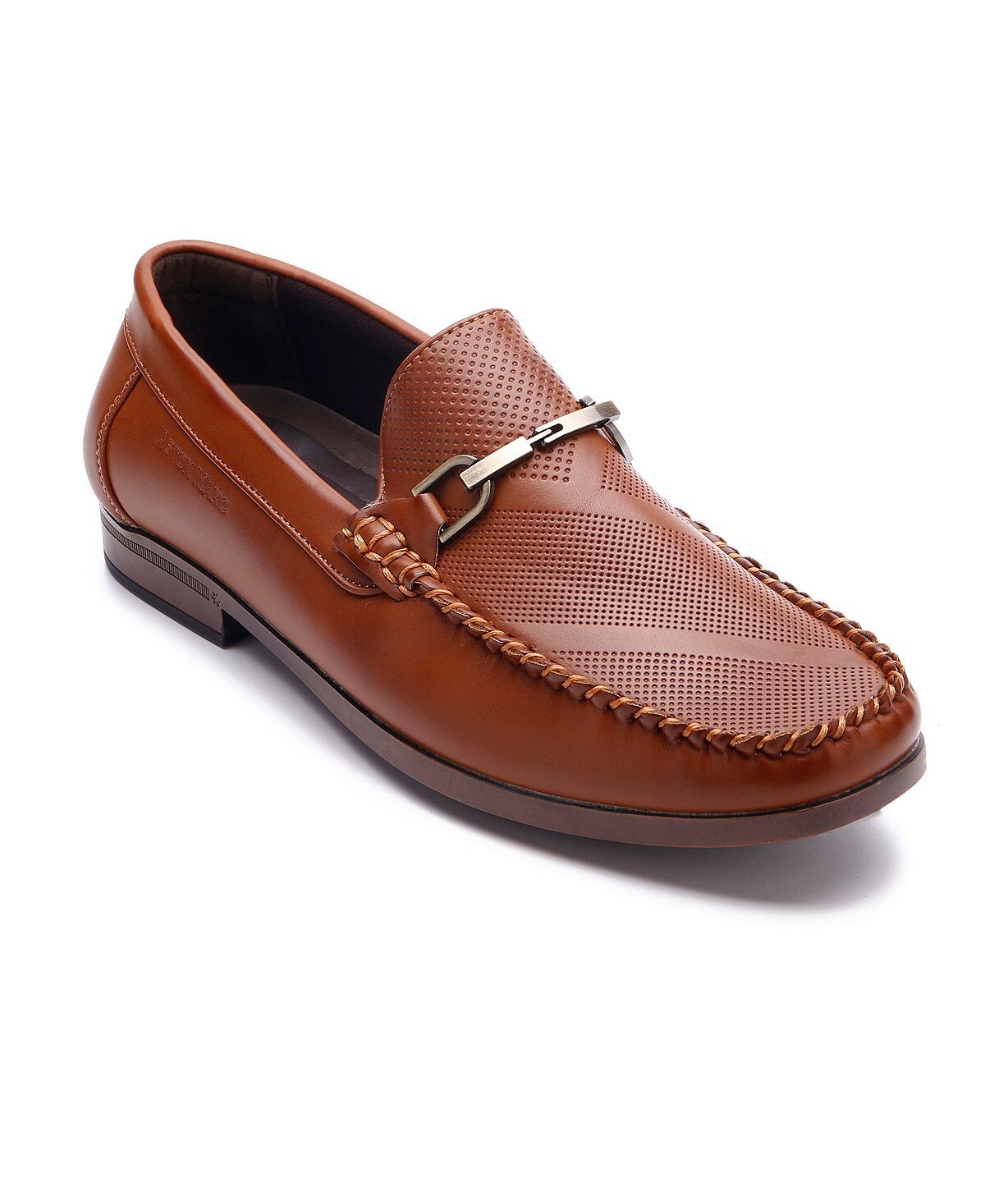 Освежите свой повседневный и повседневный стиль с помощью современной перфорированной союзки и металлических пряжек этих удобных лоферов от Aston Marc.