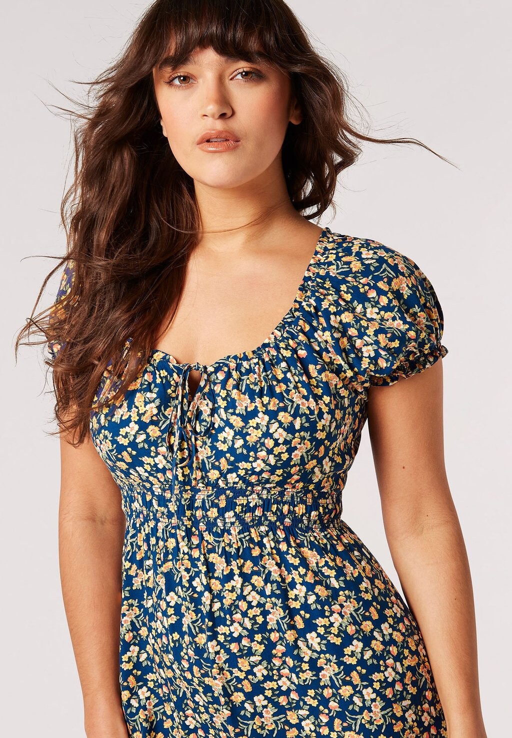 Платье летнее Ditsy Floral Milkmaid Apricot, синий