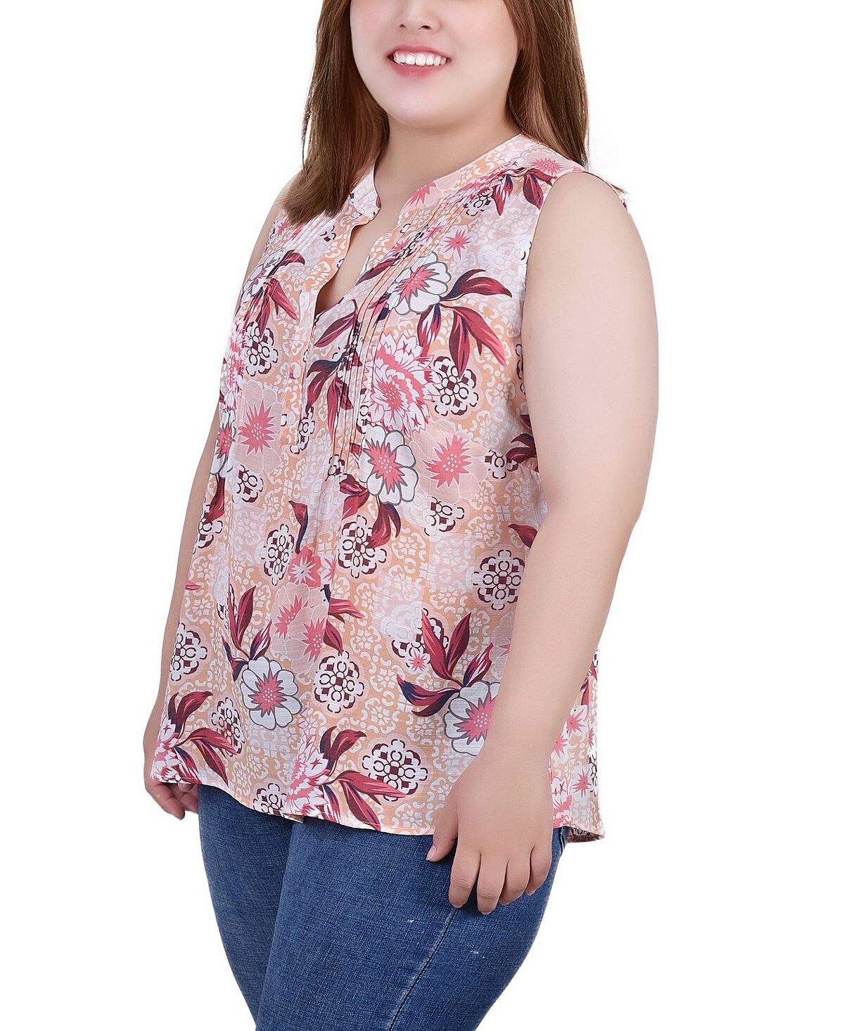 Плюс размер блуза без рукавов с защипами NY Collection, мульти