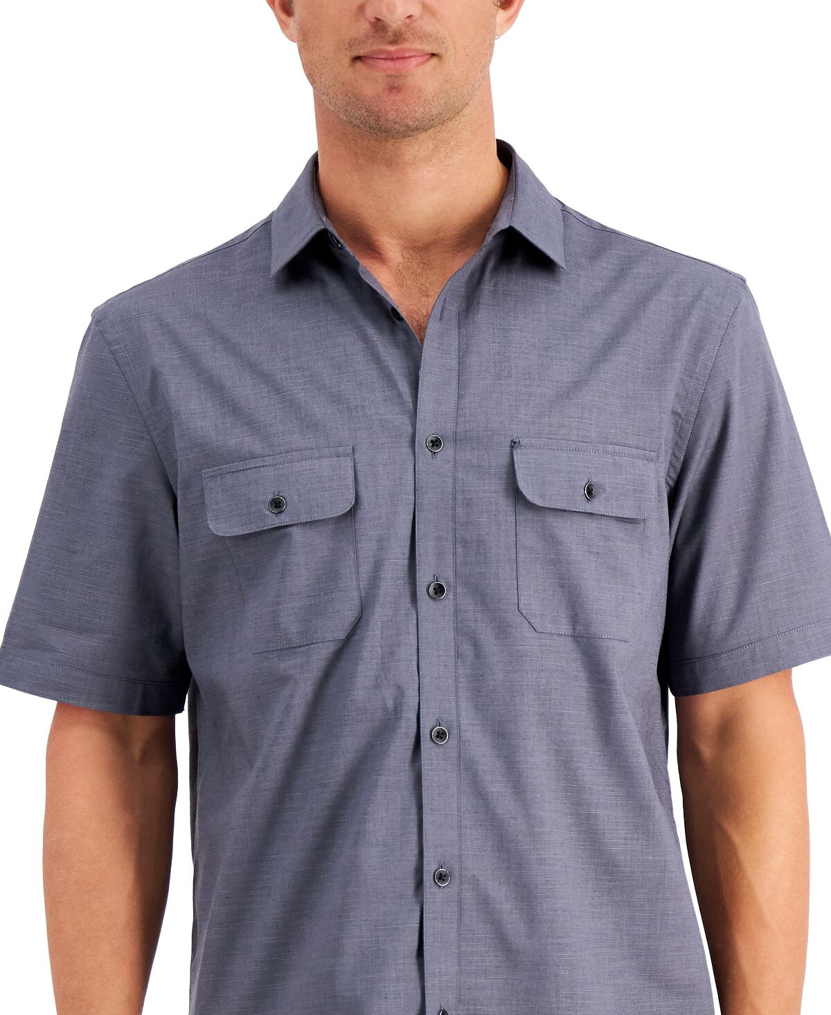Эта рубашка на пуговицах с короткими рукавами от Alfani, готовая к сафари или нет, с текстурированными линиями и передними карманами с клапанами добавят азарта в любой образ.