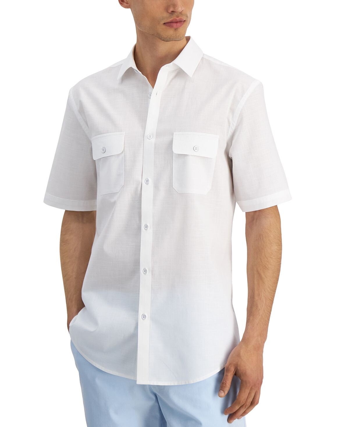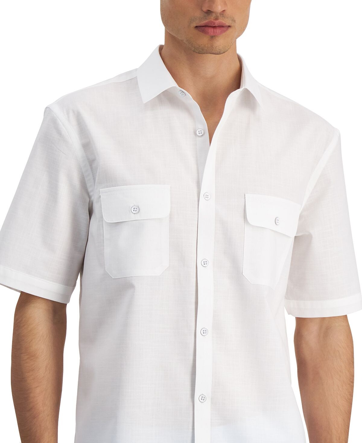Эта рубашка на пуговицах с короткими рукавами от Alfani, готовая к сафари или нет, с текстурированными линиями и передними карманами с клапанами добавят азарта в любой образ.