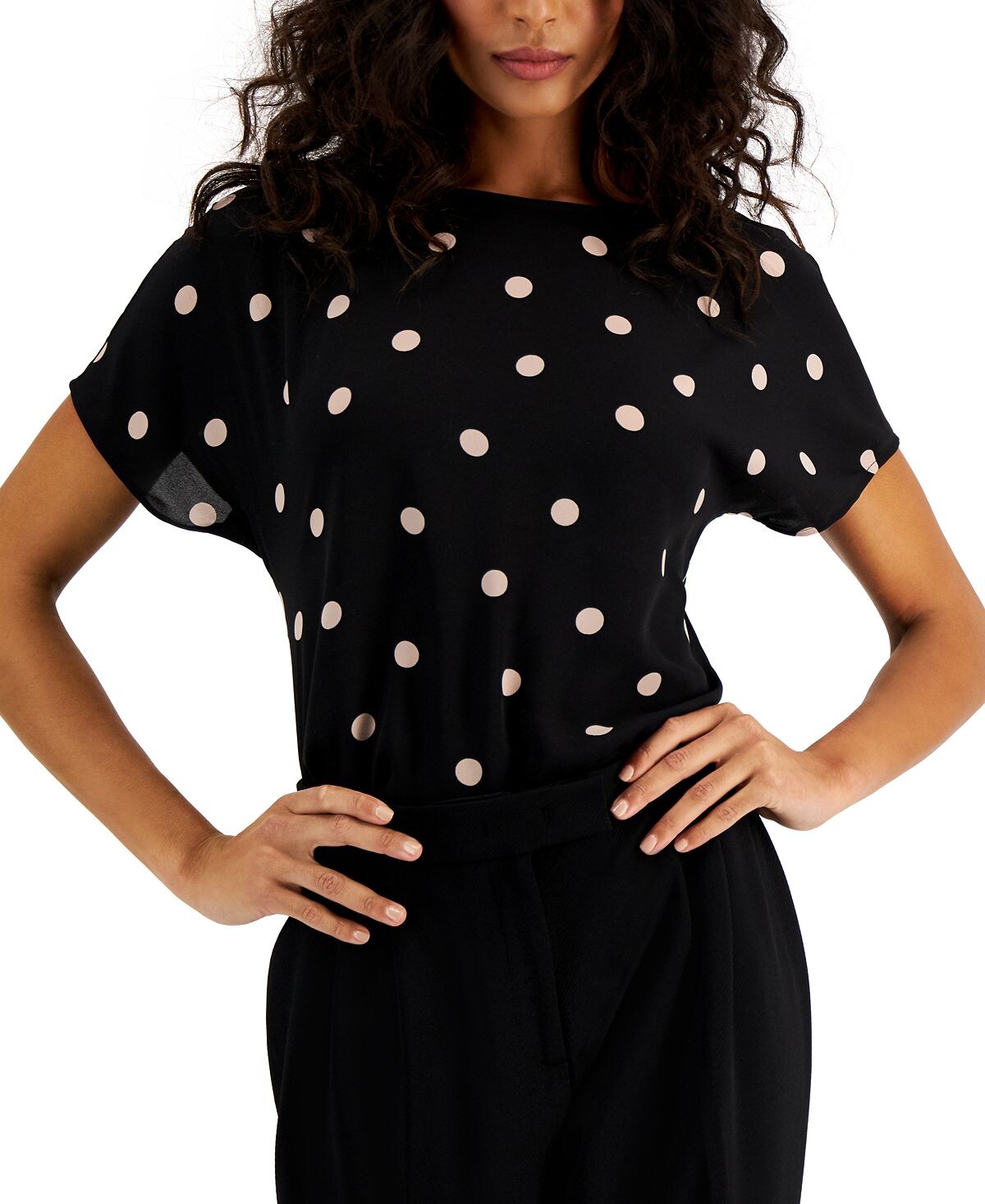 Блуза в горошек с вырезом лодочкой Anne Klein, мульти