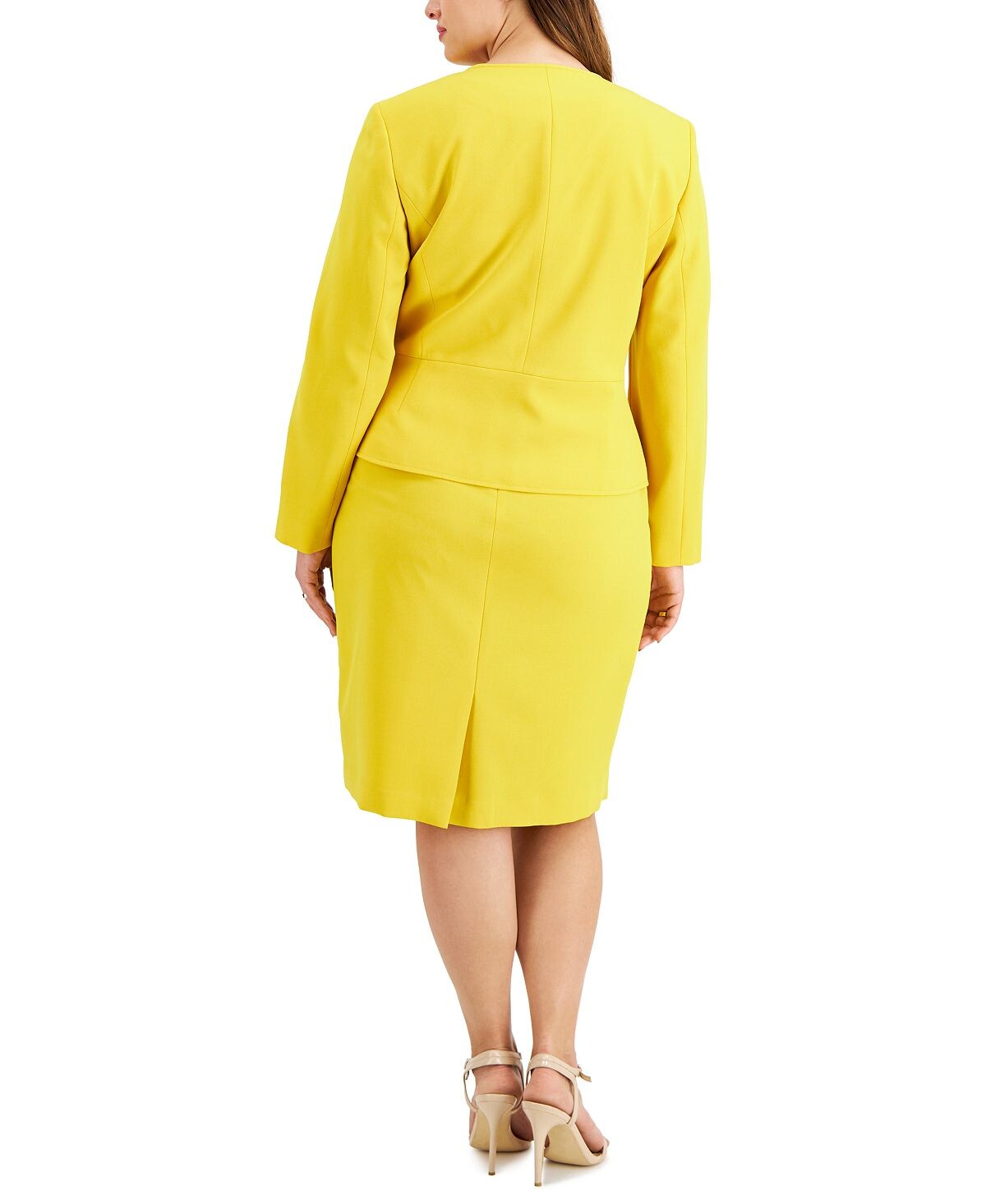 Оденьтесь, чтобы произвести впечатление, всегда с этим костюмом от Le Suit, отличающимся лестным силуэтом-футляром и верхним кардиганом с открытым передом.