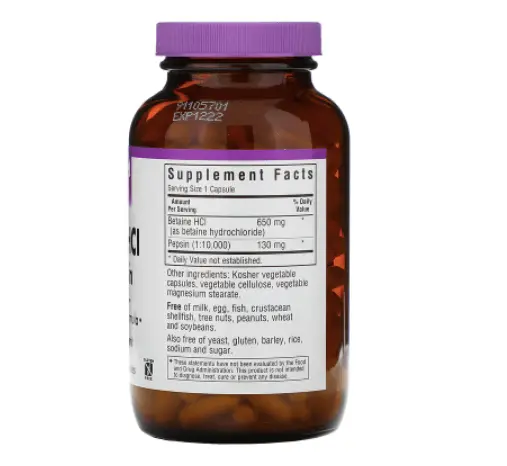 Капсулы бетаина гидрохлорида с пепсином от Bluebonnet содержат особую комбинацию бетаина гидрохлорида и пищеварительного фермента пепсина.