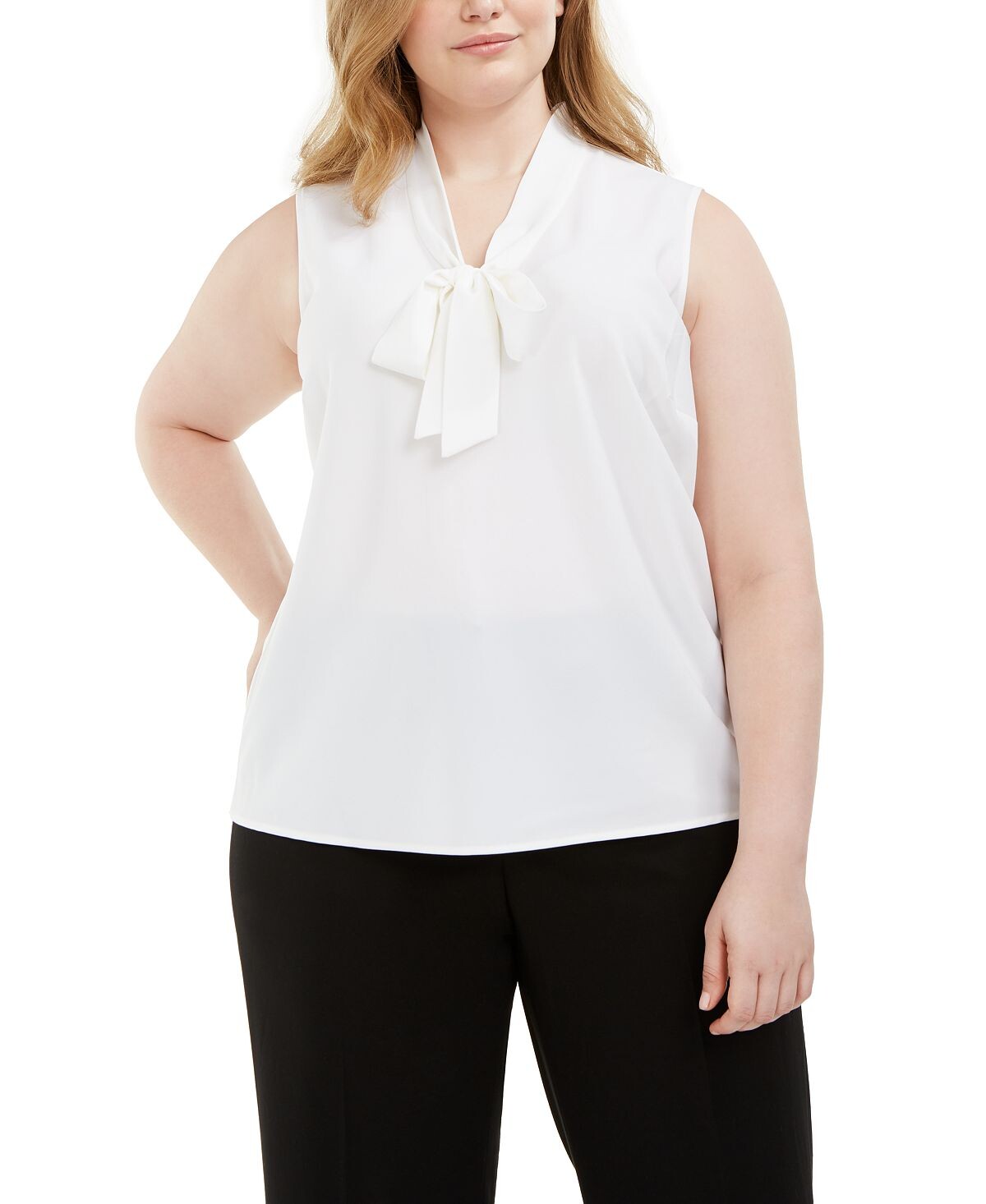 Галстук-бабочка ниспадает с выреза этого топа больших размеров от Kasper, вдохновленного карьерой, с силуэтом без рукавов.