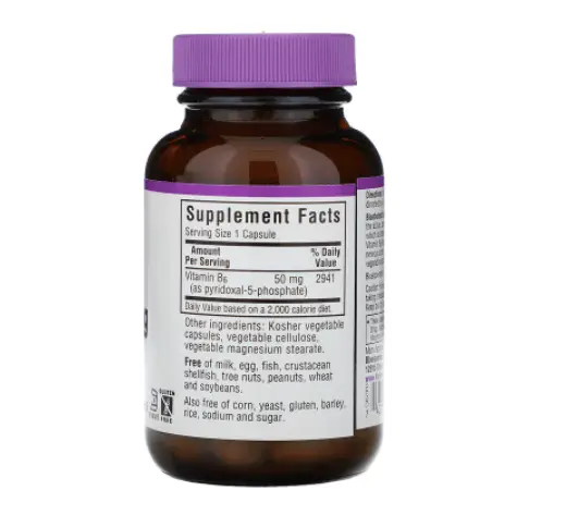Капсулы Bluebonnet's Cellular Active P-5-P 50 мг содержат активную коферментную форму витамина B6 в форме пиридоксаль-5-фосфата, который лучше усваивается и сохраняется в организме.