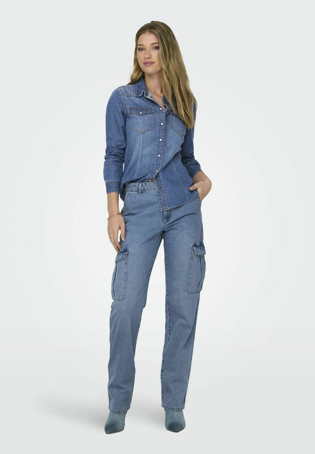 Рубашка ONLY, джинсовая, синего цвета