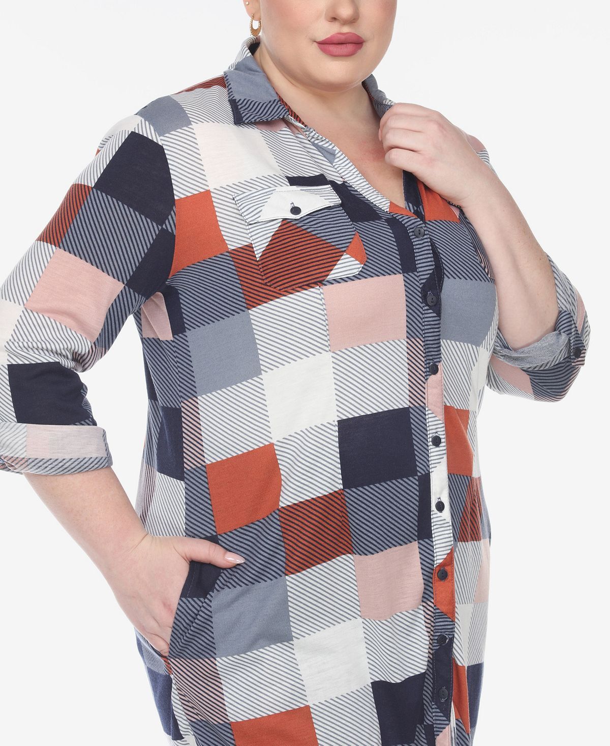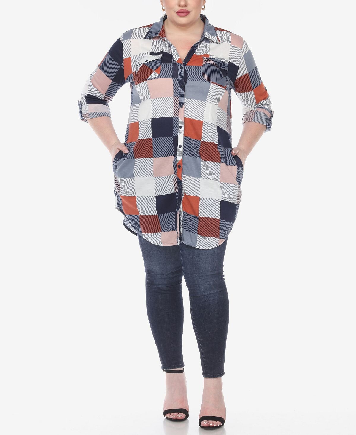 Плюс размер рубашка-туника в шотландскую клетку White Mark, мульти