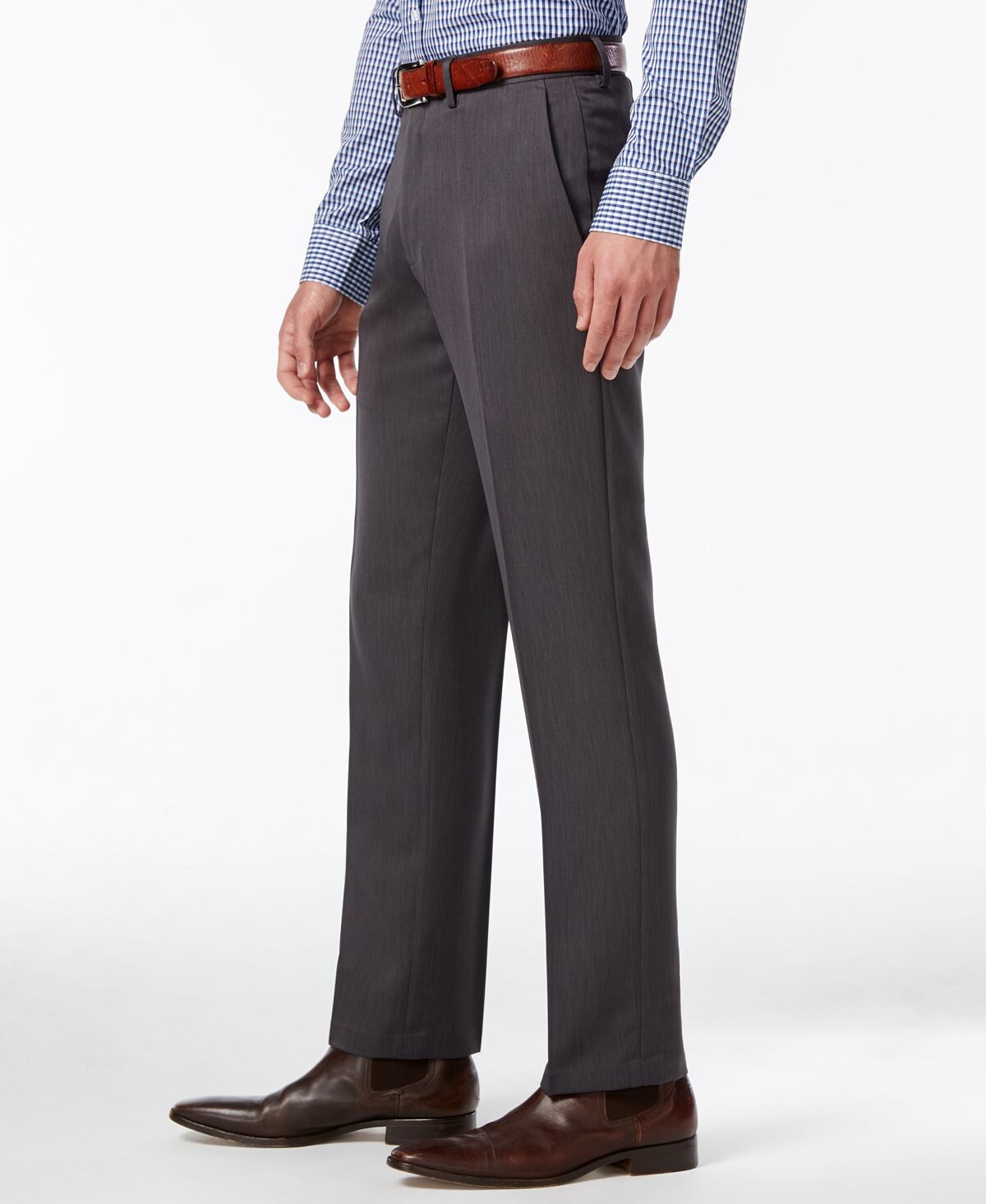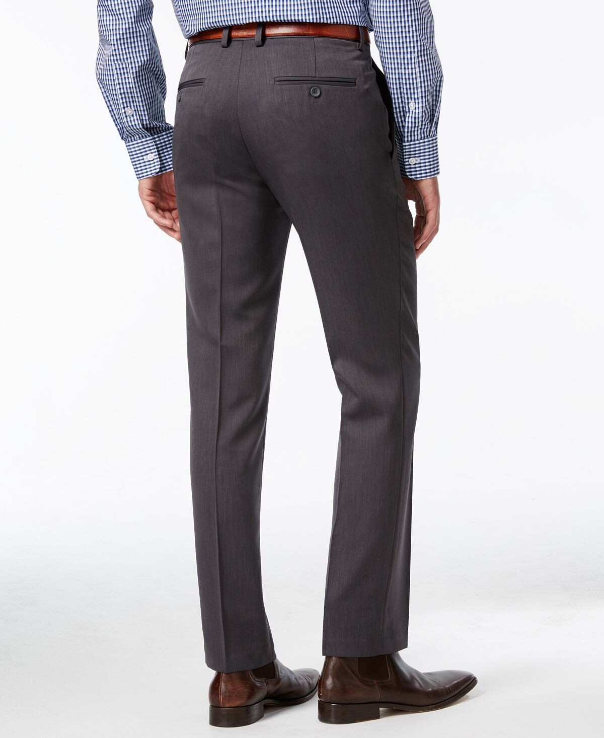 Kenneth Cole Reaction делает базовые серые брюки современными благодаря этому фирменному облегающему дизайну с низкой посадкой.