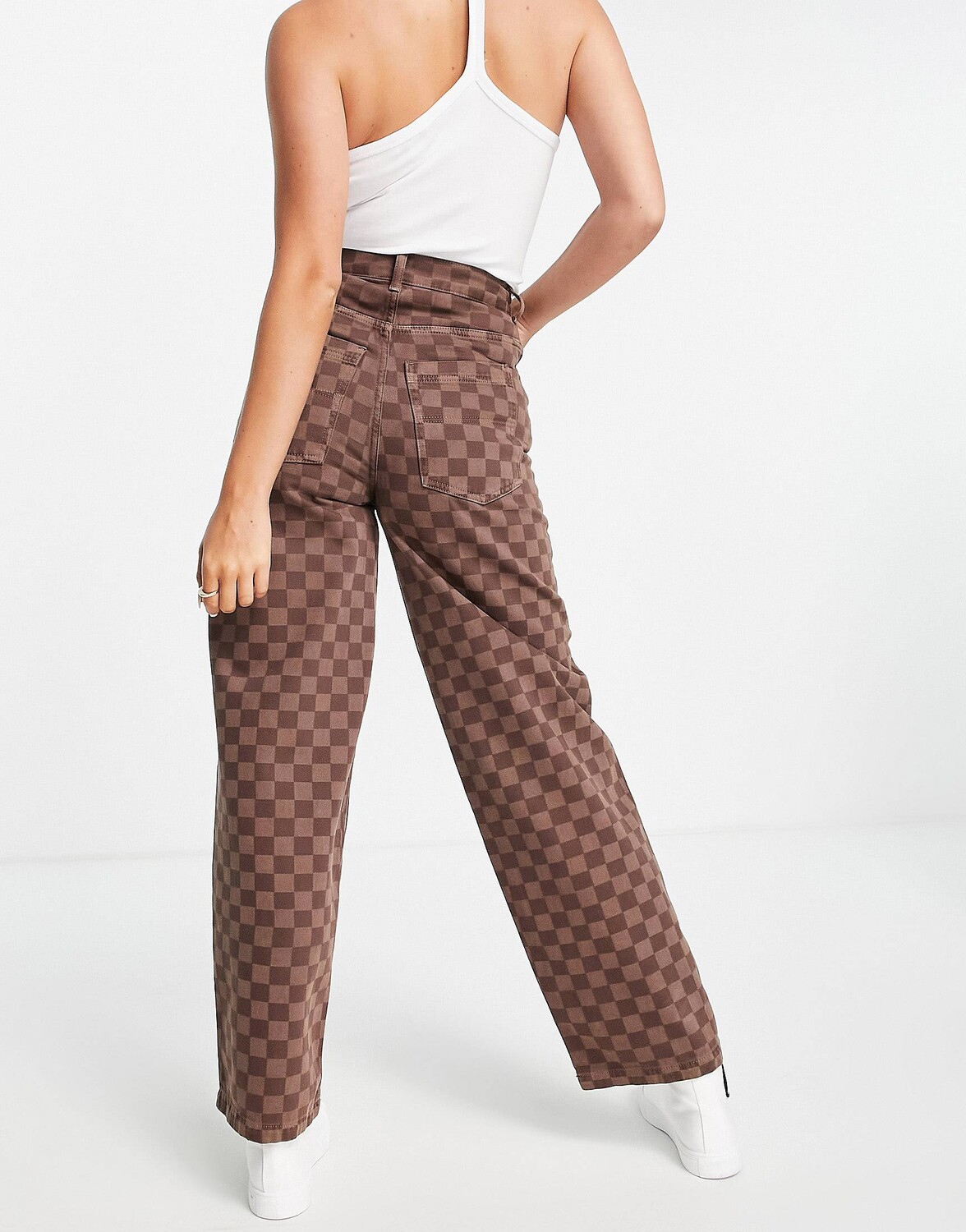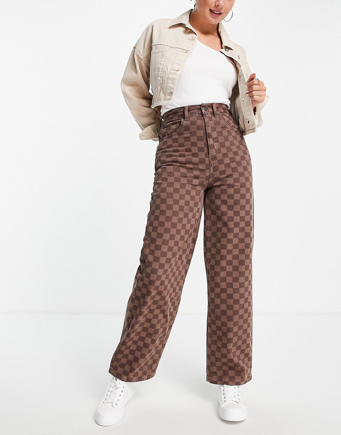 Коричневые джинсы в клетку Topshop Baggy