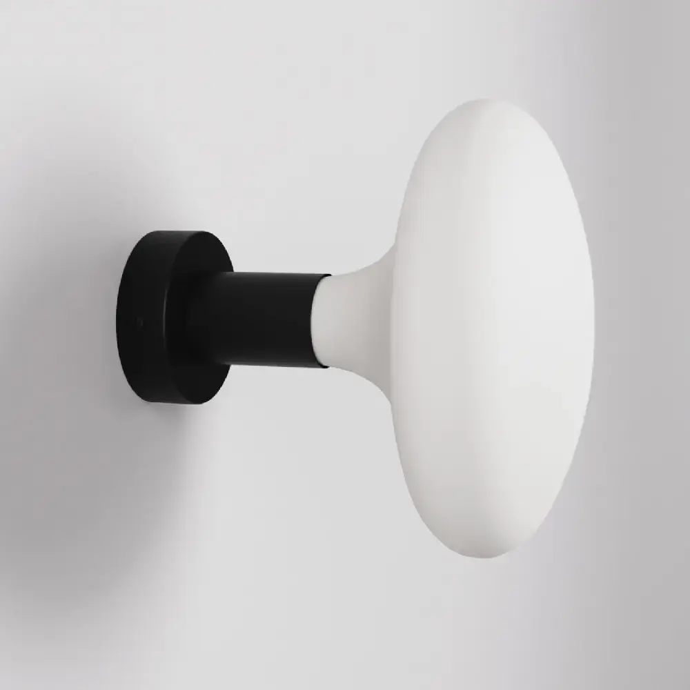 Настенный и потолочный светильник из черного металла. Патрон лампы с резьбой Е27. В комплект входит лампочка мощностью 6Вт 560Лм с фарфоровым эффектом. Диаметр 8,3 см. Общая длина около 20 см.