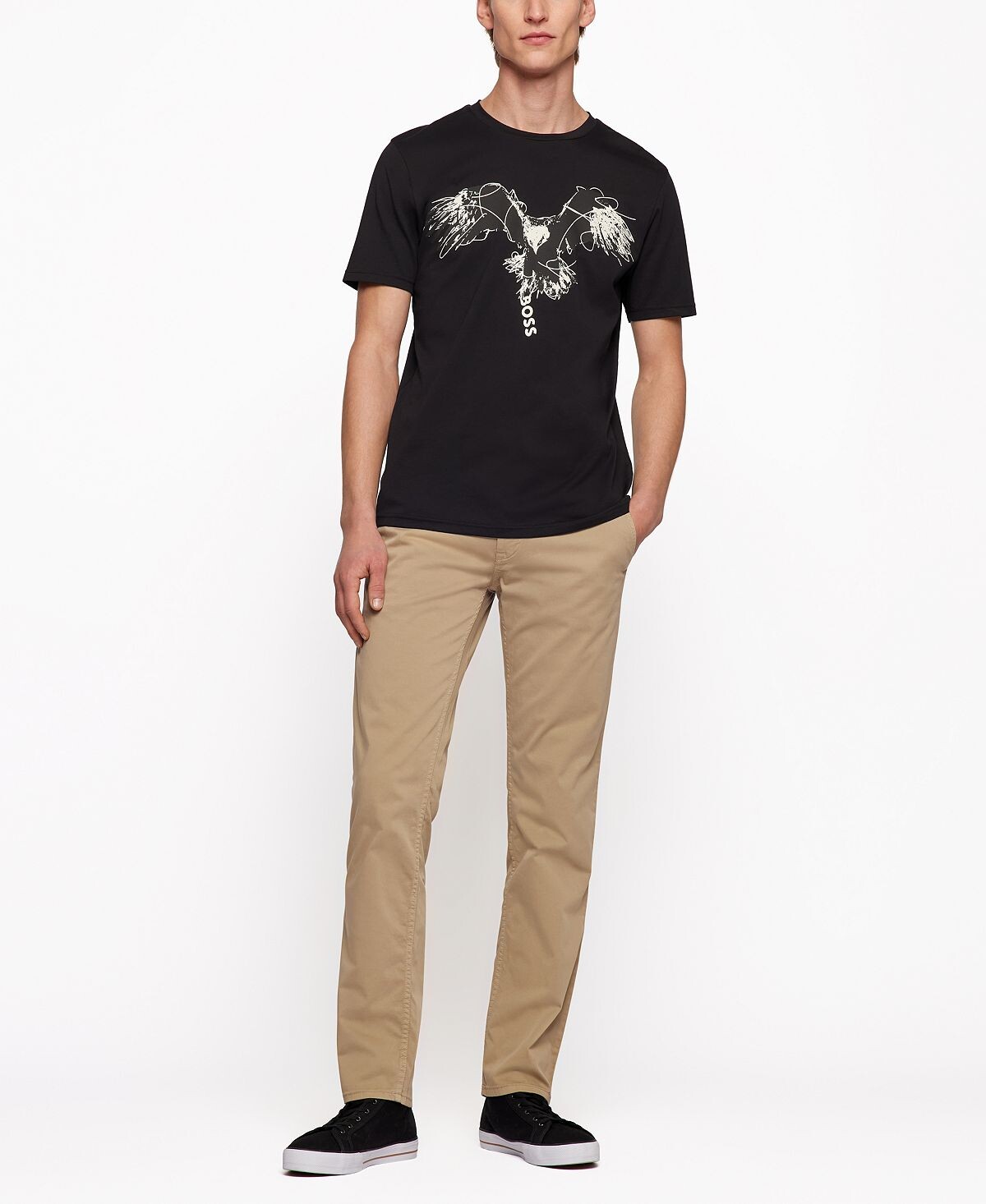 Брюки облегающего кроя с классической посадкой от BOSS menswear. Эти брюки, выполненные из эластичного хлопкового атласа для повседневного комфорта, имеют двойные петли сверху, чтобы можно было носить с собой ремни любой ширины.
