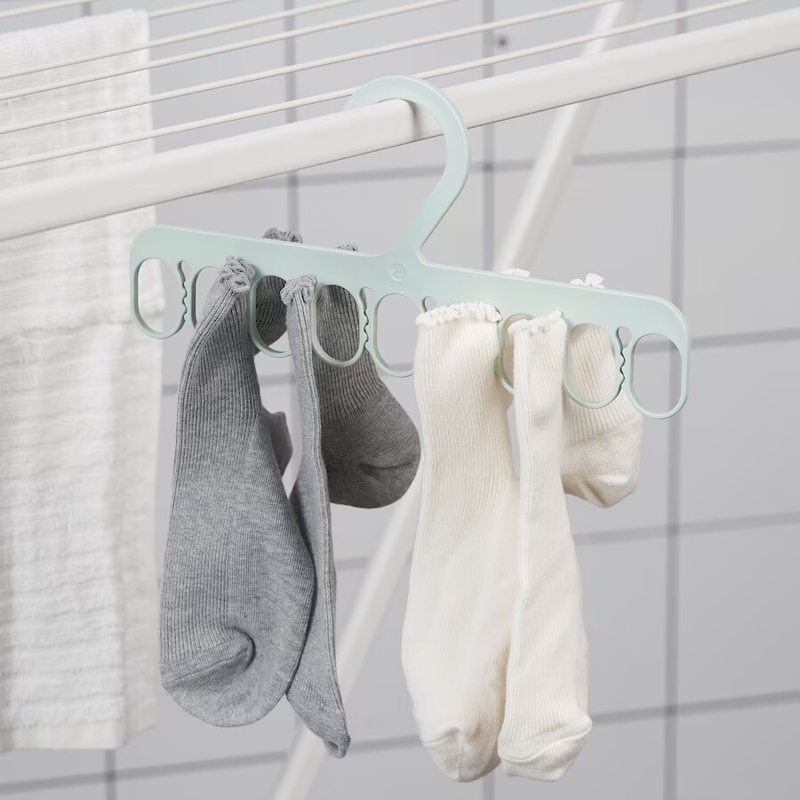 Эту гибкую вешалку легко повесить для просушки носков, нижнего белья и других мелких предметов одежды дома или в путешествии. Натяните одежду между колечками и достаньте, когда она высохнет.