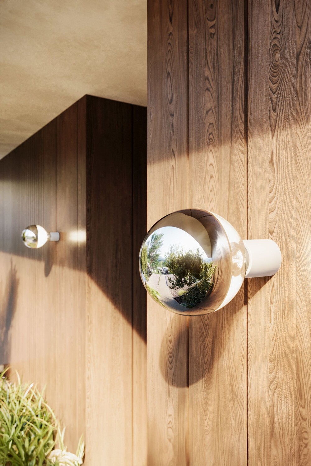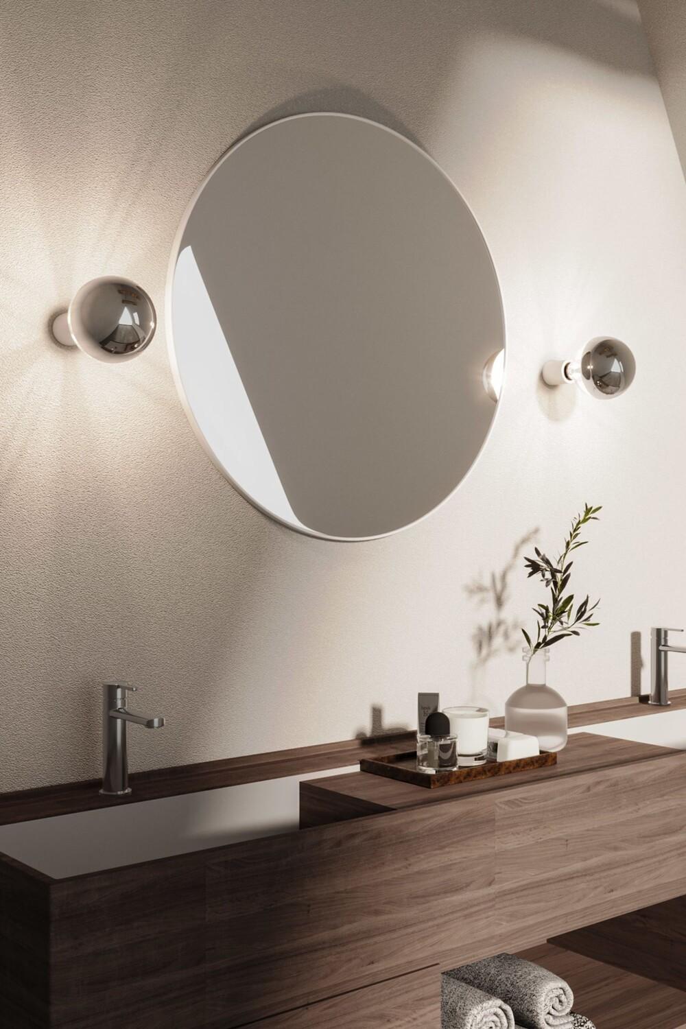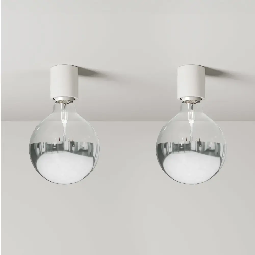 Набор из двух минималистичных настенных и потолочных светильников. Патрон лампы IP44 с резьбой E27. В комплект входит лампочка Silver Half Sphere мощностью 7 Вт 750 Лм. Диаметр патрона лампочки 5 см. Высота 6 см. Общая длина примерно 21 см.