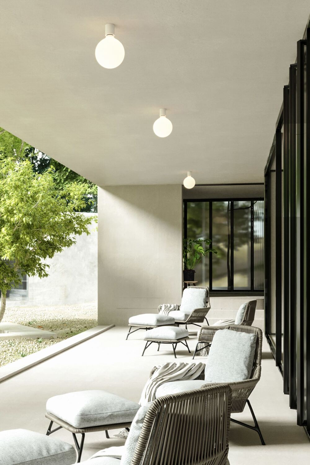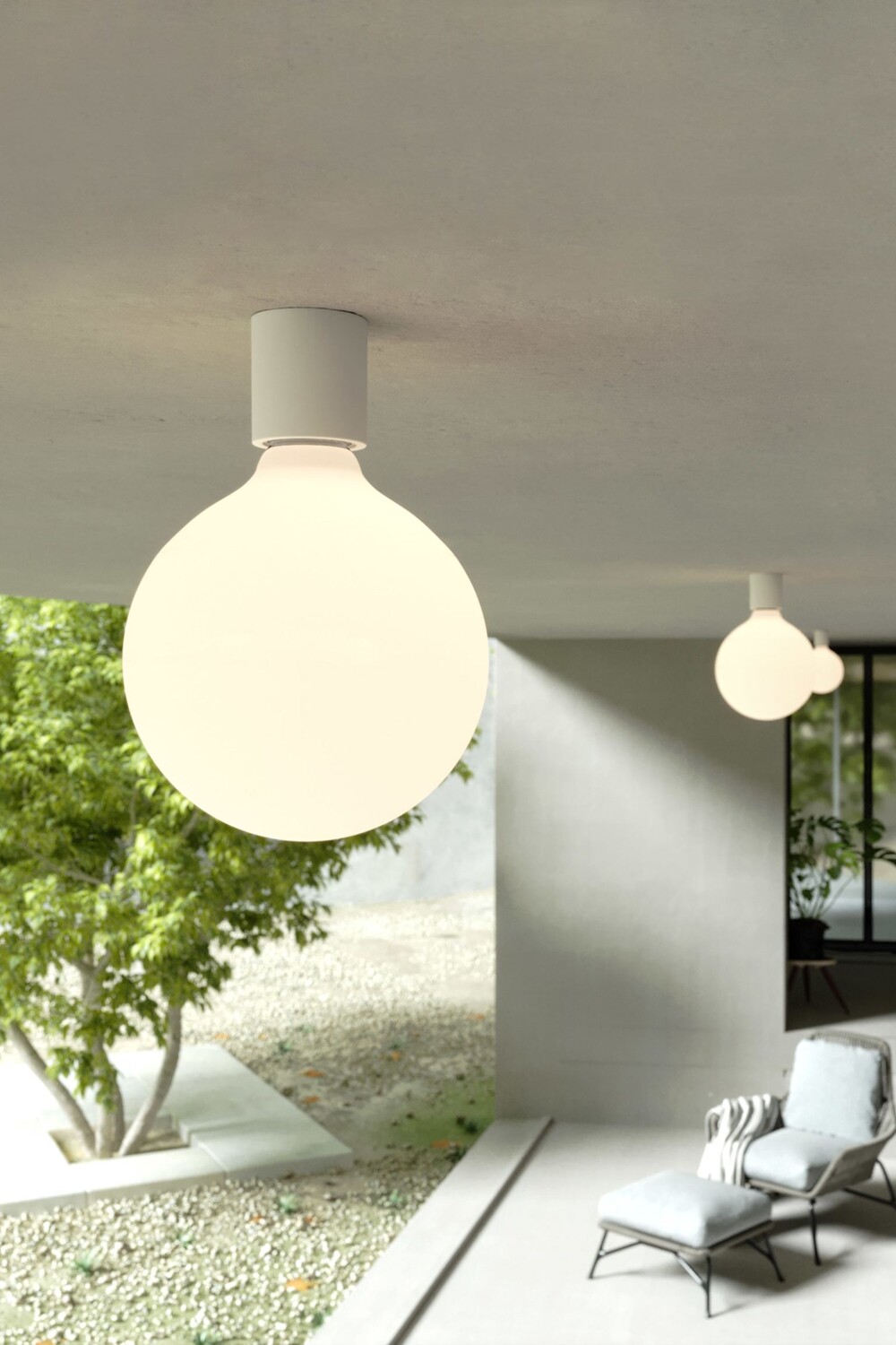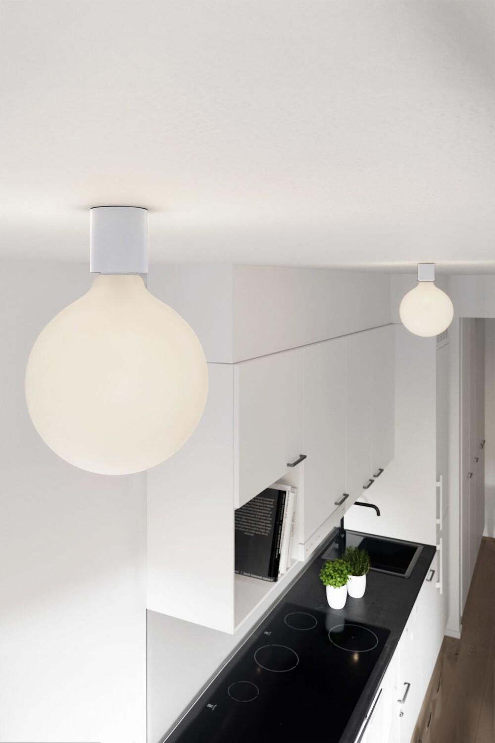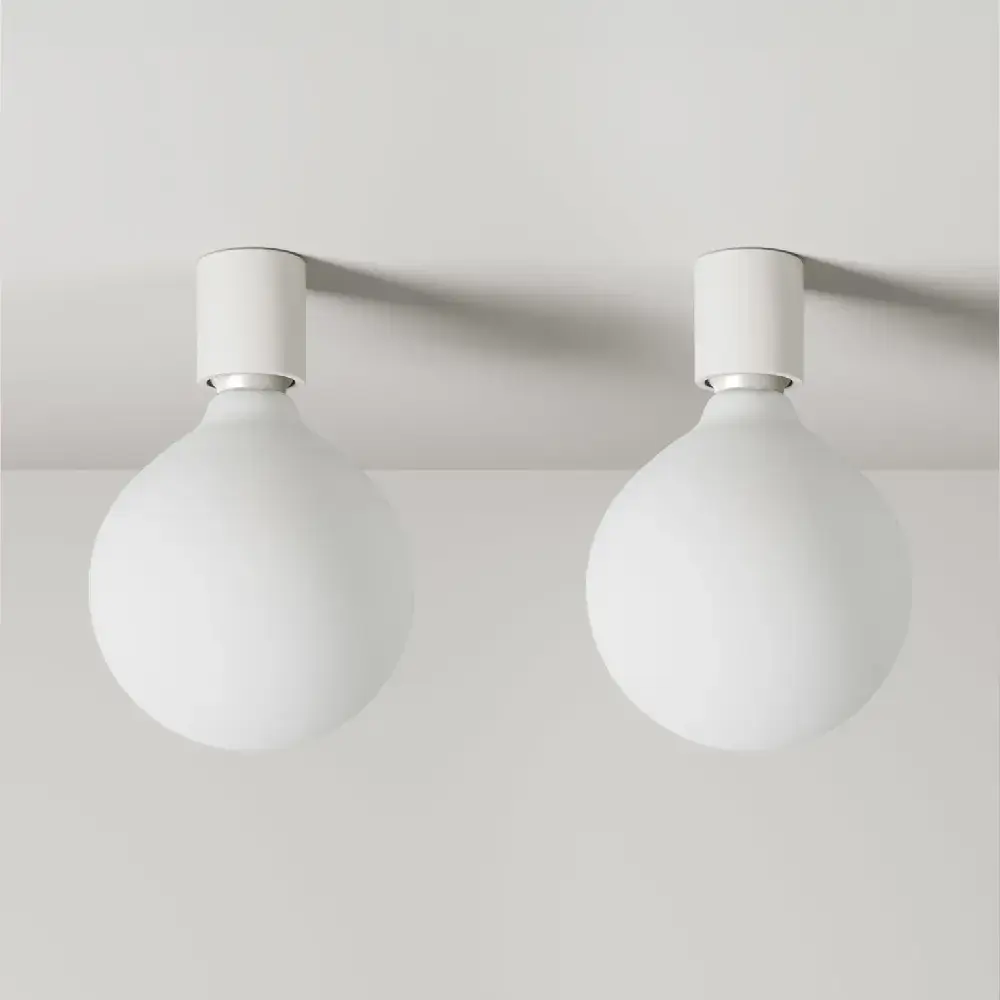 Набор из двух минималистичных настенных и потолочных светильников. Патрон лампы IP44 с резьбой E27. Лампа с фарфоровым эффектом мощностью 7 Вт, 640 лм в комплекте. Диаметр патрона лампы: 5 см. Высота 6 см. Общая длина примерно 21 см.