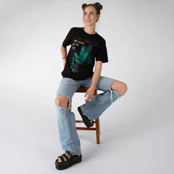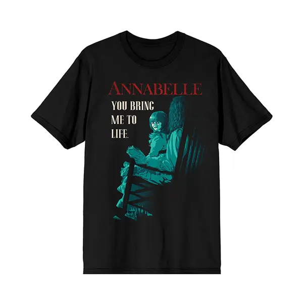 Сделайте свой День святого Валентина еще более жутким с новой футболкой Annabelle от Journeys! На этой футболке с короткими рукавами спереди полностью изображена наша любимая жуткая кукла с надписью