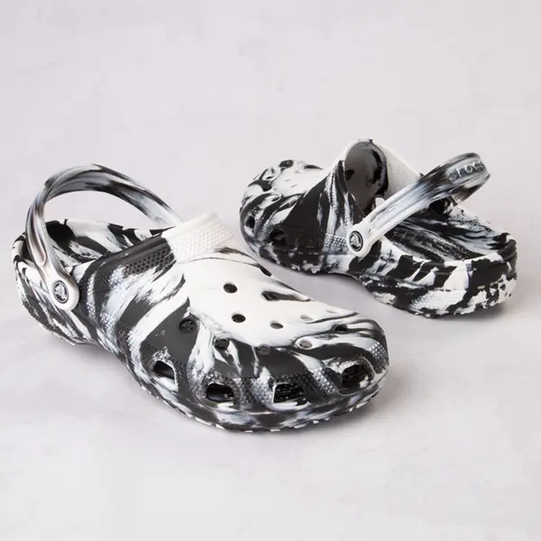 Приготовьтесь к величайшему приключению в новых классических сабо от Crocs! Эти красочные сабо имеют полностью формованную и легко очищаемую конструкцию из пенопласта Crocs Croslite культового силуэта сабо, мраморный эффект по всей поверхности, вентилируемую переднюю часть стопы для воздухопроницаемости и легкого отвода воды и мусора, ремешок на пятке для надежной фиксации и легкий, нескользящий материал. подошва для гибкого сцепления.