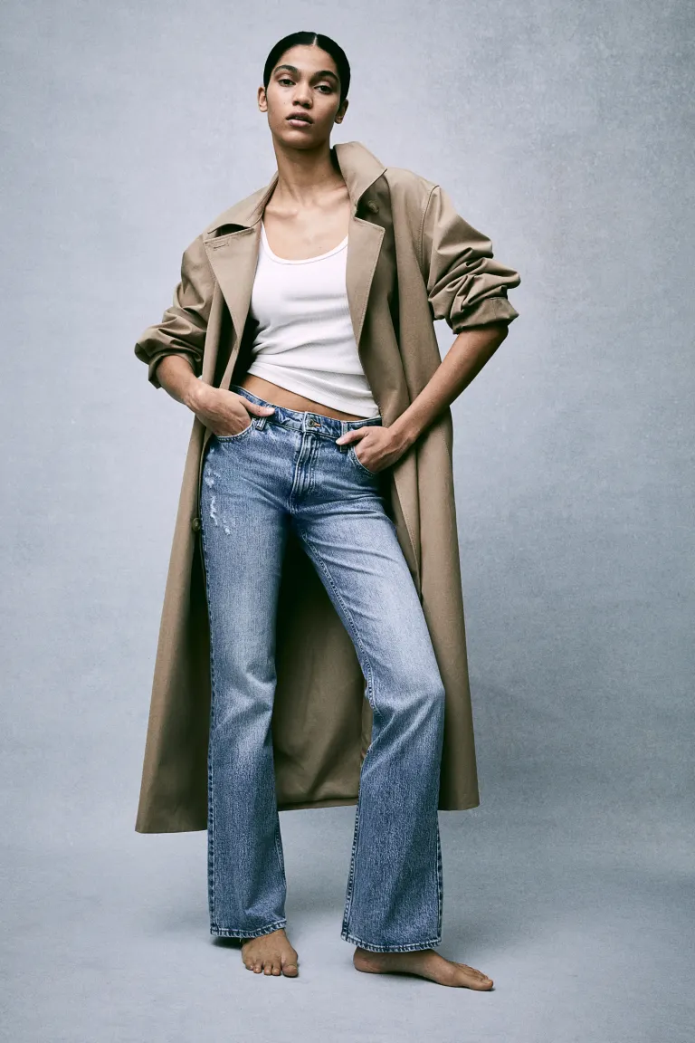 Джинсы с пятью карманами из хлопкового денима с небольшой эластичностью для повышенного комфорта при ношении. Модель Bootcut, облегающая по фигуре от талии до бедра, расклешенная от колена. Высокая талия с молнией и пуговицей. Нормальная длина. Эта модель предназначена для создания незначительного эффекта стопки или его отсутствия в передней части стопы. Силуэт, который актуален каждый сезон. Длина: Длинная. Высота талии: Высокая талия. Посадка: приталенная посадка. Стиль: Буткат. Состав. Хлопок 99%, эластан 1%. Дополнительная информация о материале. Общий вес данного изделия включает:. 19% переработанный хлопок. 1% переработанного полиэстера. Вес мелких деталей, таких как нитки, пуговицы, молнии, украшения и принты, не учитывается. Общий вес изделия рассчитывается путем сложения веса всех слоев и основных компонентов. Исходя из этого, посчитаем, какая часть этого веса приходится на каждый материал. При расчете наборов и многоупаковок все детали учитываются вместе как один товар. Материал: хлопок, джинсовая ткань.