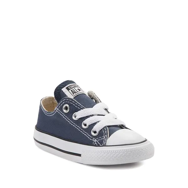 Классические кроссовки Converse Low-Top для детских кортов. Для оригиналов нельзя быть слишком старым или молодым. Эти кроссовки Converse All Star Lo для малышей имеют прочный верх из парусины и прочную резиновую подошву с фирменным ромбовидным рисунком.
