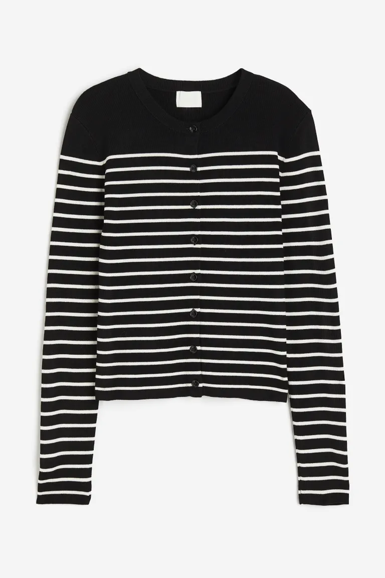 Кардиган тонкой вязки H&M в полоску, черный 4 277₽